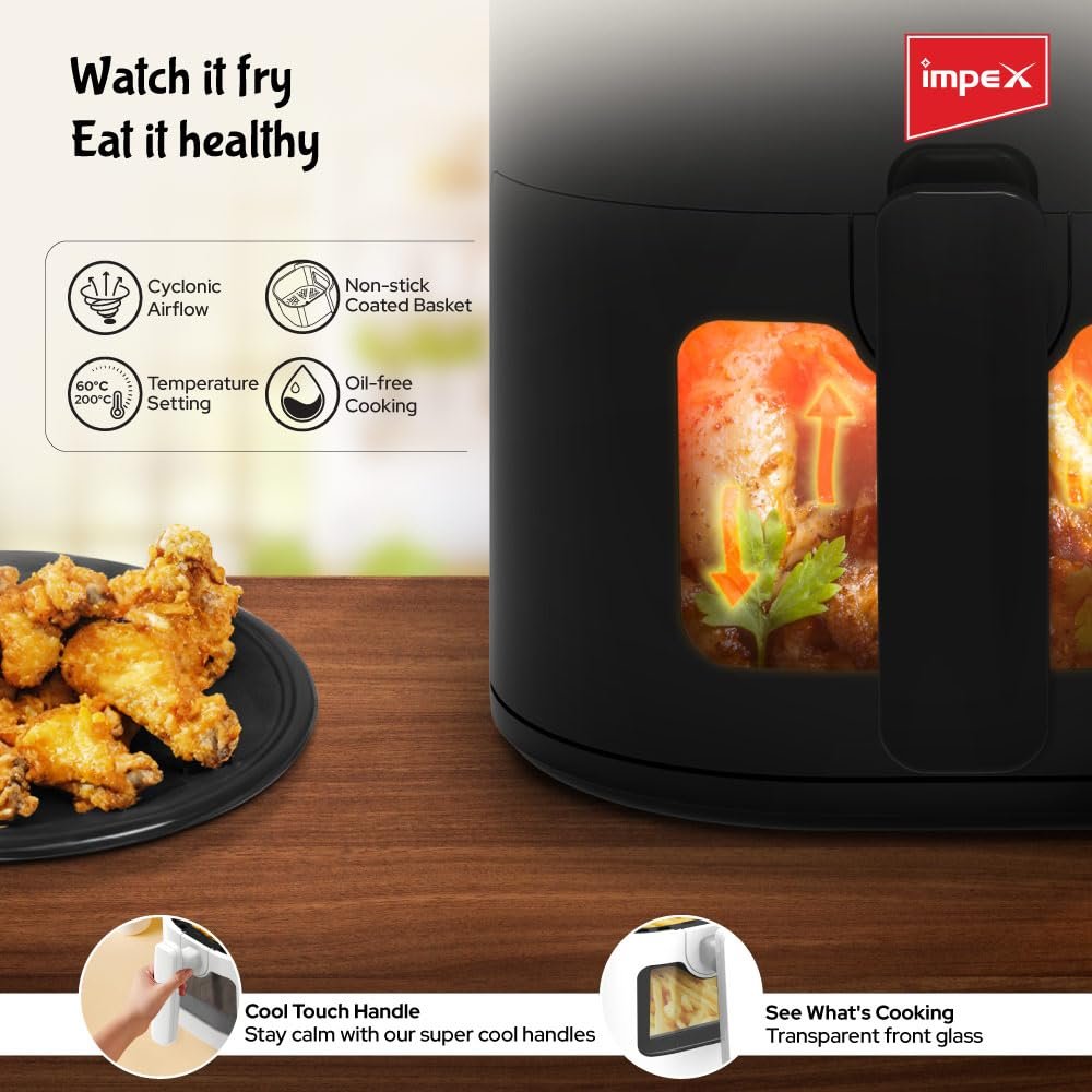 Most affordable productPerfect product at this price. This is the first time I am using an Air Fryer. This product is loaded with features and see through window at this price is very Great.We can make oil-free food items such as banana chips, chicken fry, cake, fish fry, steak, vegetables fry etc. Thanks to Impex, will strongly recommend!!