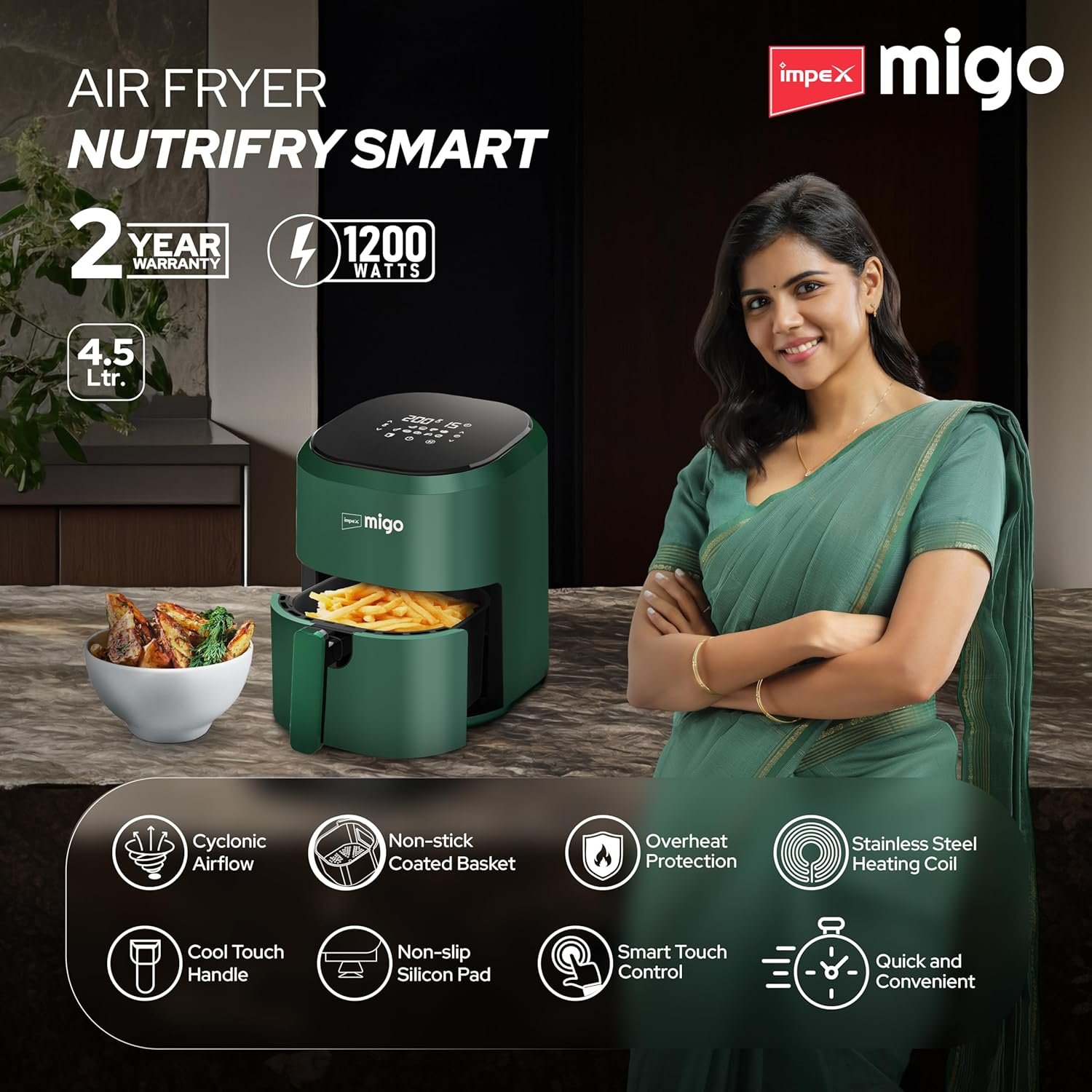 Impex Digital Air Fryer 10 in 1 | 1200 W Oil-free Cooking | 4.5 L Instant Electric Air Fryer for Home Auto Cut Off, Fry, Grill, Roast, Steam, and Bake | 2 Years Warranty