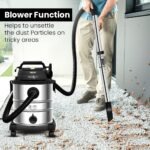 POWERFUL BLOWER FUNCTION- The blower function is suitable for drying and cleaning of narrow and hard- to-reach indoor or outdoor areas. For effective blowing results, do not use any filter in vacuum cleaner. To hold a large amount of waste, this vacuum cleaner boasts a container capacity of 25 L.