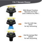 Wet or dry, bagged or bagless – No matter it is dust, hair, daily waste, the device can clean the dirt perfectly. You don’t need to change filter during operation. Please take out the cloth dust filter and use sponge filter when sucking liquid