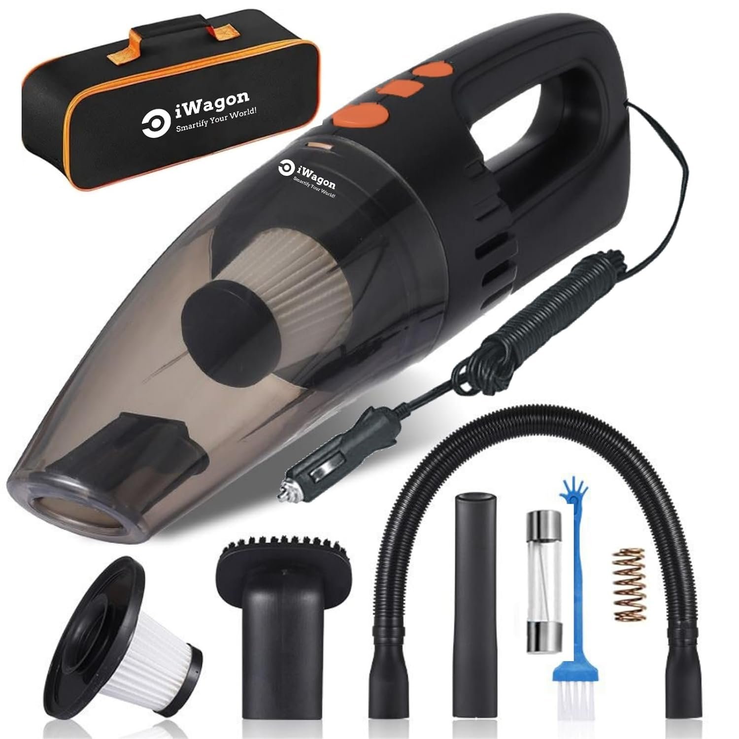 iWagon i5103 Car Vacuum Cleaner 12V High Power Handheld Car Vacuum for Deep Cleaning | 110W Vacuum Motor & 5000PA Powerful Suction,13 Ft Cord, HEPA-Filter & Bag for Travel-Car Accessories (Black)