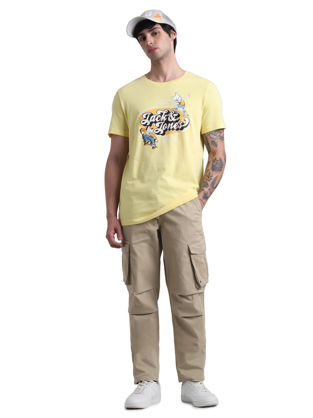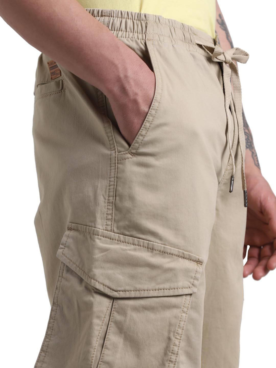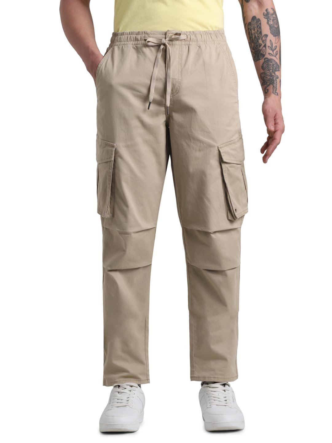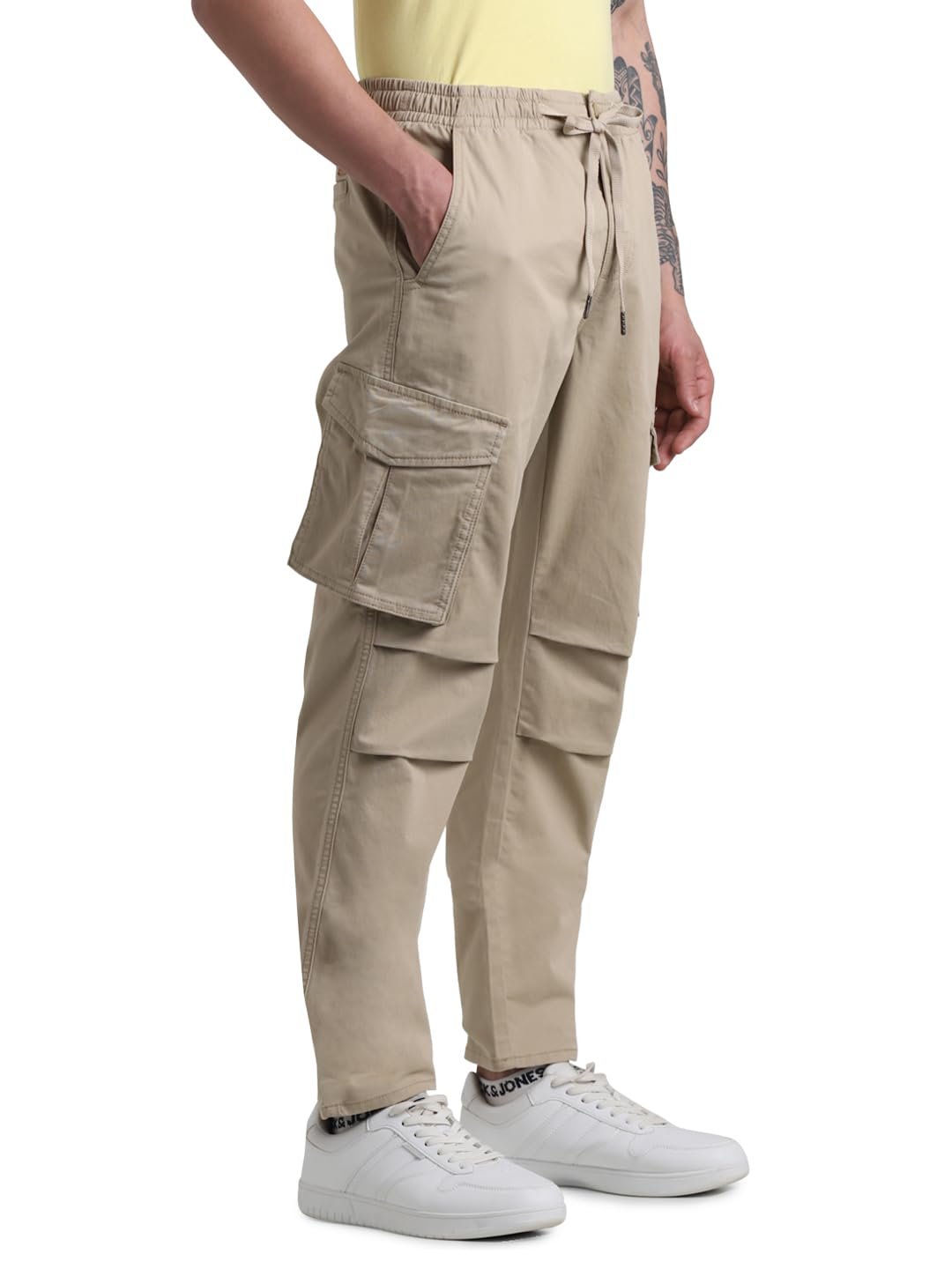 Jack & Jones Men Solid Regular Fit Mid Rise Stretchable Beige Cargo Pants