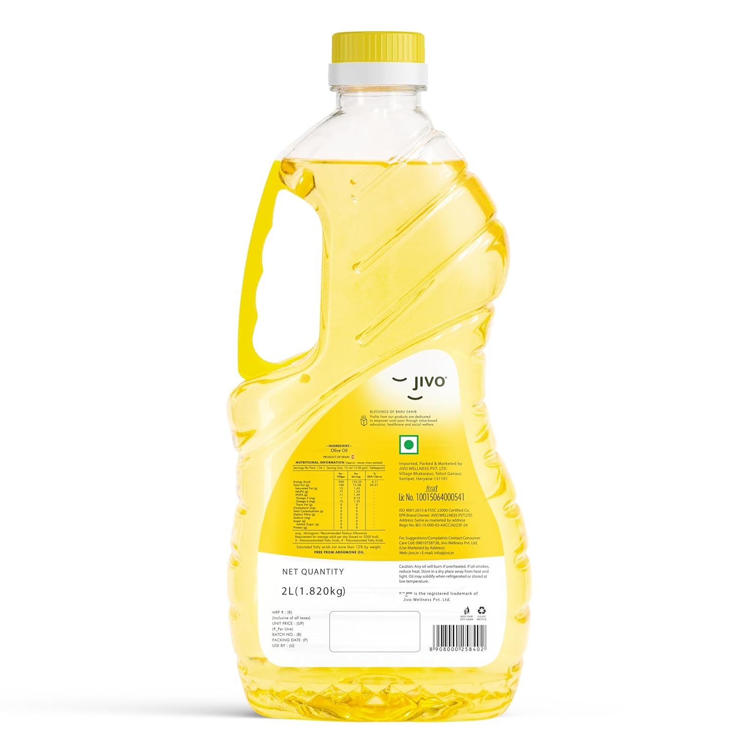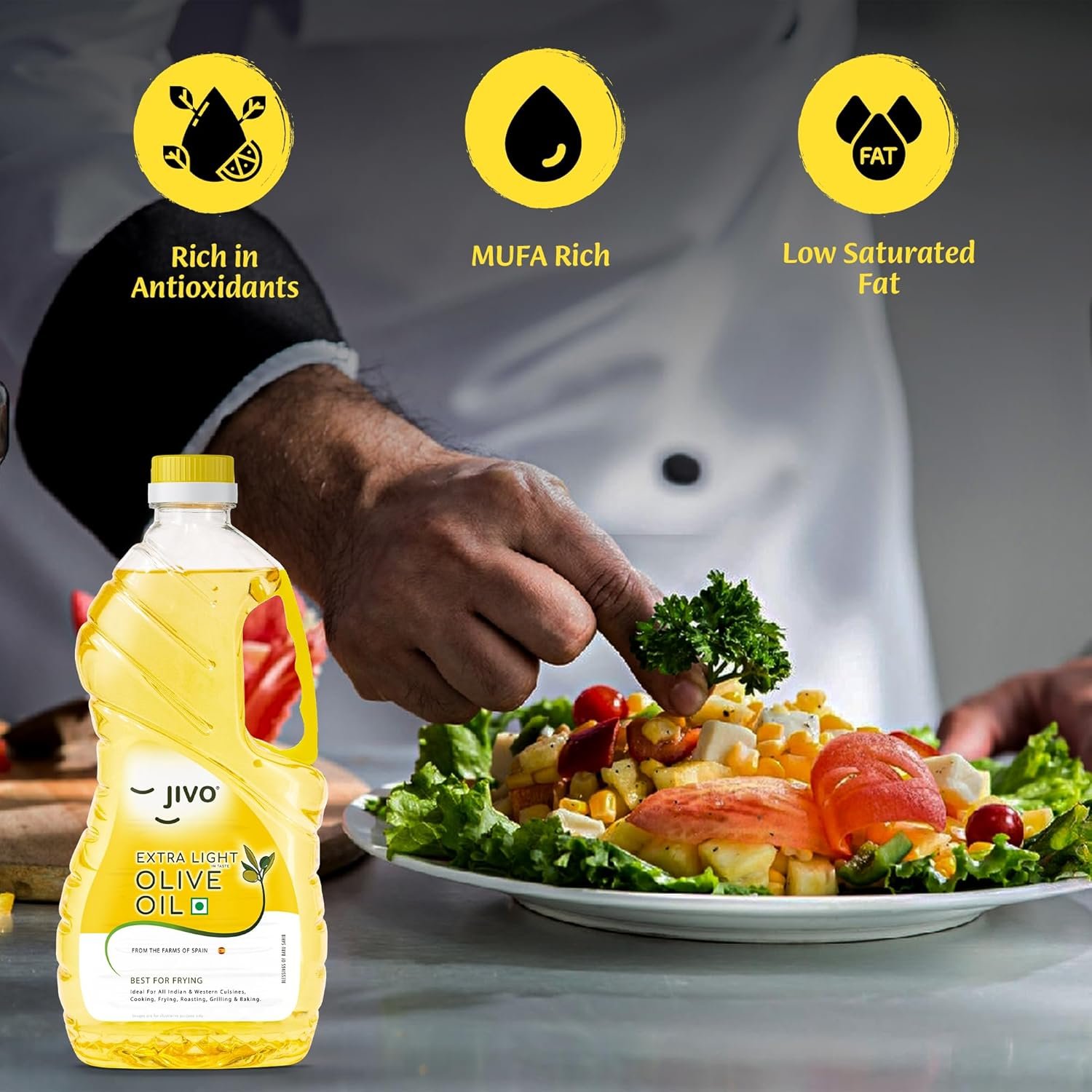 Jivo Extra Light Olive Oil 2 Litre | Imported from Spain | Everyday Cooking, Dressings, Salads, Soups, Dips & Marinades | Low in Saturated Fat | Olive Oil in Convenient Pet Bottle for Easy Pouring