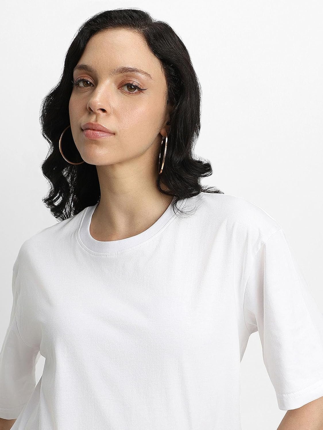 JUNEBERRY® Pure Cotton Oversized Baggy Fit Half Sleeve Drop Shoulder Plain Solid Round Neck T-Shirt for Women (Available in Black, White, Lilac, Cork, Maroon, Royal Blue, Swan White, Soap Nut Colors)