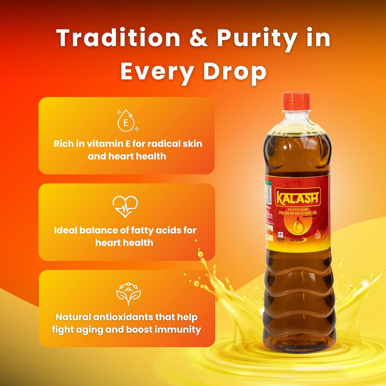 KALASH Kachi Ghani Pure Mustard Oil | 500 ML PET BOTTLE | Nutrient-Rich & Chemical-Free | Mustard Seeds | Retains Natural Flavour & Aroma | Ideal for Cooking & Wellness