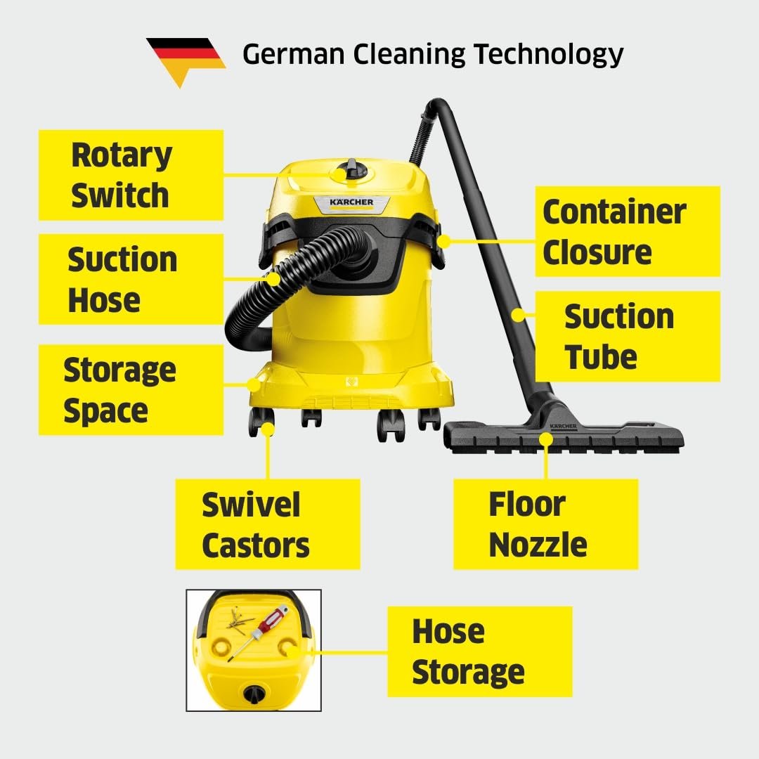 Compact and Lightweight: The KARCHER WD 3 V is designed with a durable plastic body and a 17-liter tank capacity, offering a lightweight and portable solution for all your cleaning needs.
