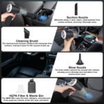 Multiple Nozzle Attachments: The vacuum cleaner comes with an oblong nozzle, long flat mouth suction head, and brush suction head, making it adaptable to different surfaces and cleaning needs. The oblong nozzle is great for general areas, the flat head for narrow spaces, and the brush head for delicate or textured surfaces.Efficient Keyboard Cleaning: With its powerful suction and specialized nozzle, this vacuum effectively removes dust and debris from keyboards, keeping your workspace clean.Car Interior Cleaning: The long flat mouth suction head is perfect for cleaning hard-to-reach areas in car interiors, such as between seats and in narrow crevices.Versatility for Other Surfaces: The vacuum can be used to clean a variety of surfaces, such as office tables, air vents, and dashboards. The brush head is particularly useful for areas prone to dust accumulation, such as air conditioning vents.Compact and Easy to Use: Its portable design makes it easy to handle and maneuver, whether in the car, office, or at home. This multi-use device ensures thorough cleaning in every corner, making it a must-have for daily cleaning tasks.