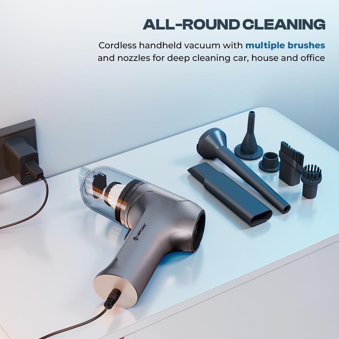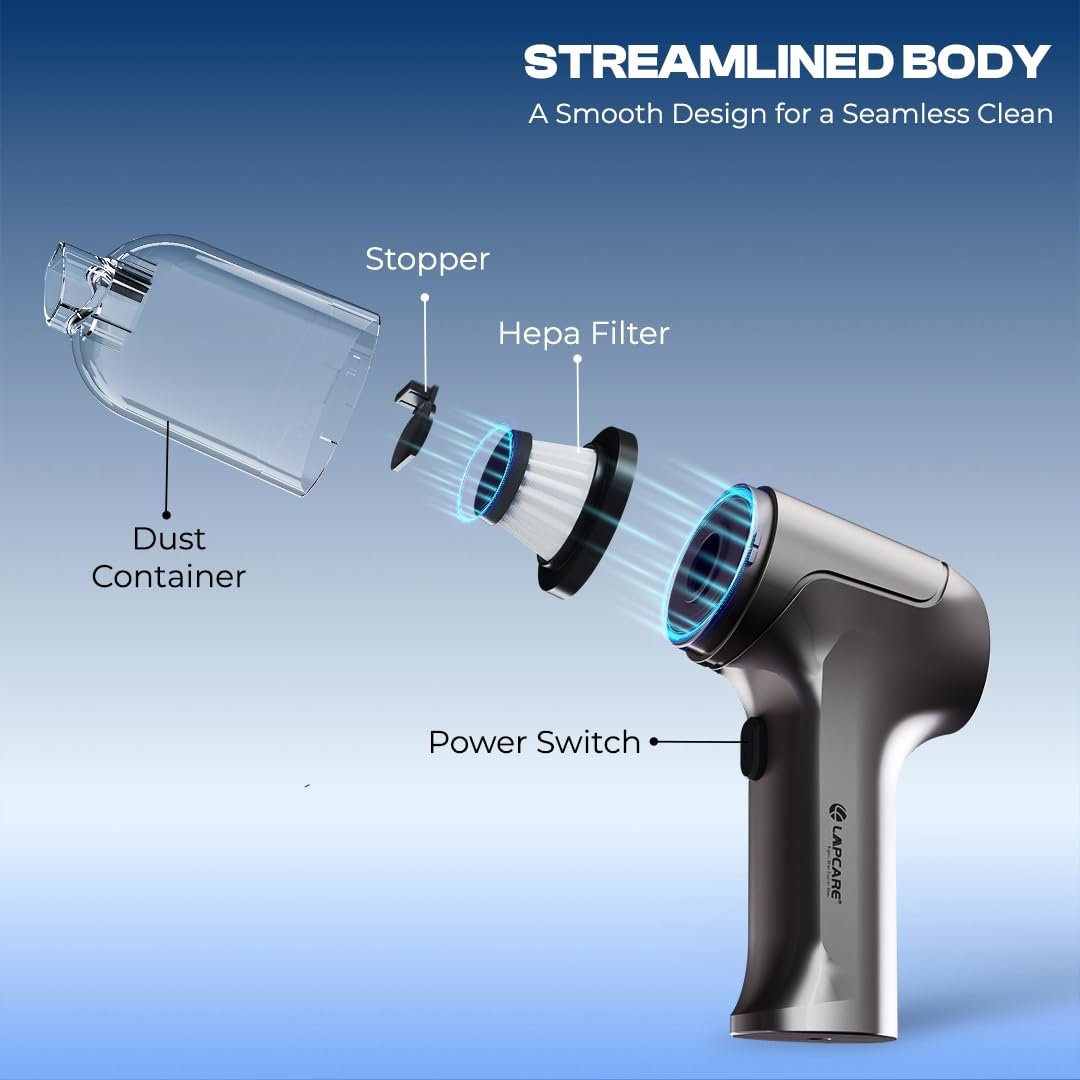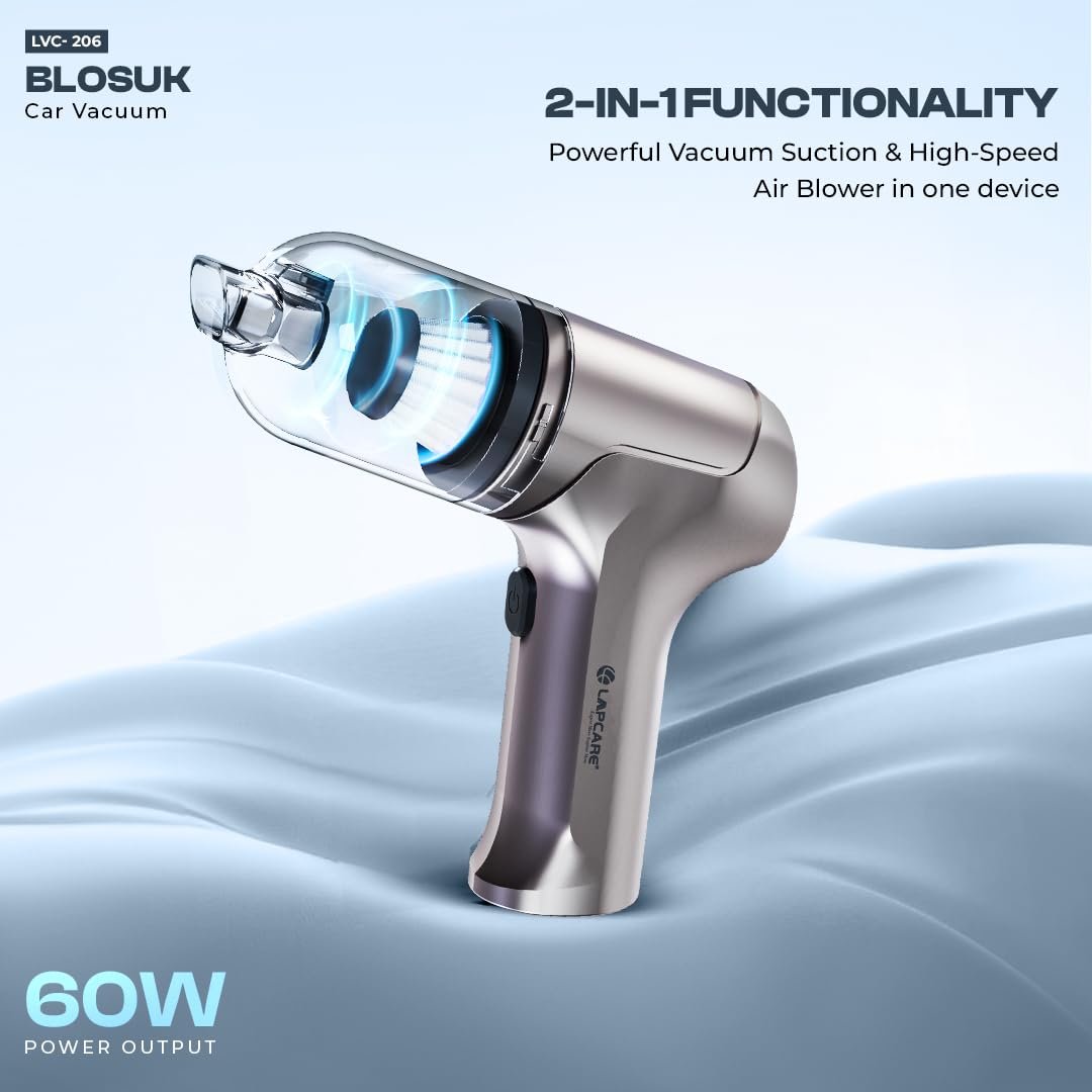 Lapcare 2-in-1 Wireless Vacuum Cleaner & Air Blower | 10kPA Suction, 4500PA Blowing Force, 60W Power | 4000 mAh Battery, HEPA Filter, for Car, Home & Pet Hair