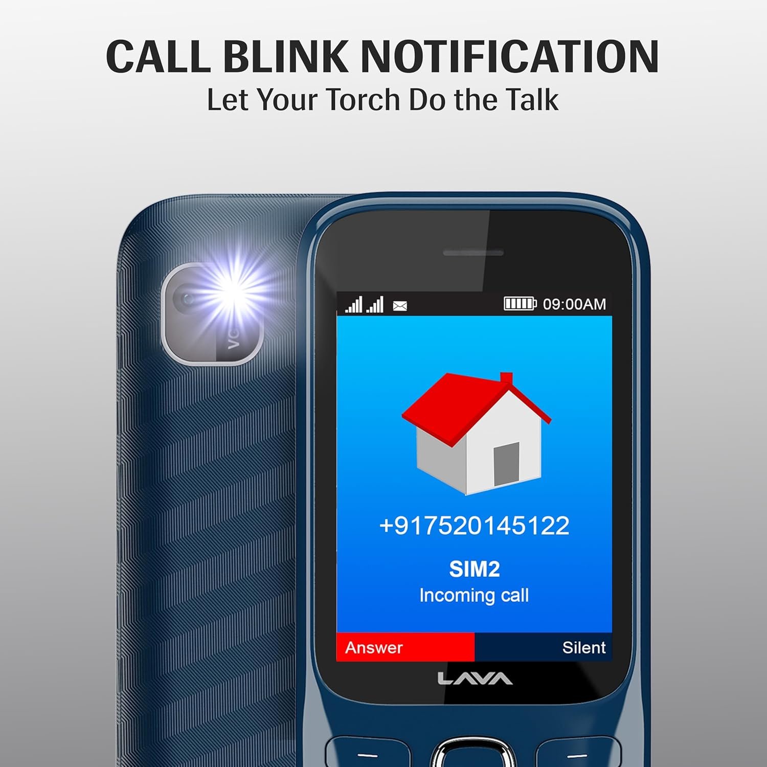 Lava Gem 2025 Dual Sim Keypad Phone (2.8″ Display, Camera & Flash) | 2575mAh Smart AI Powerful Battery | Wireless FM & Recording | Stereo Speakers | Call Recording (Blue Chrome)