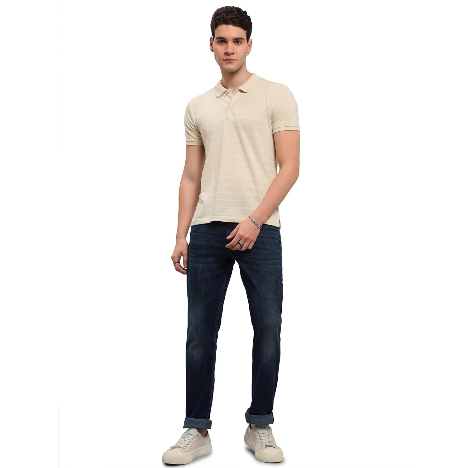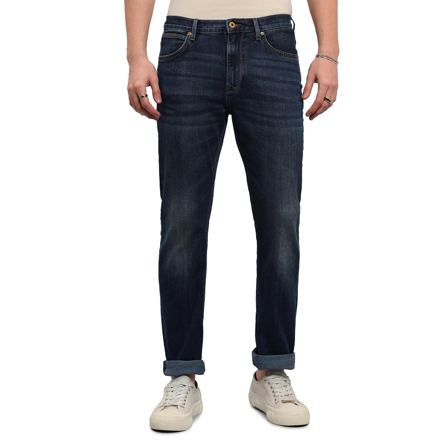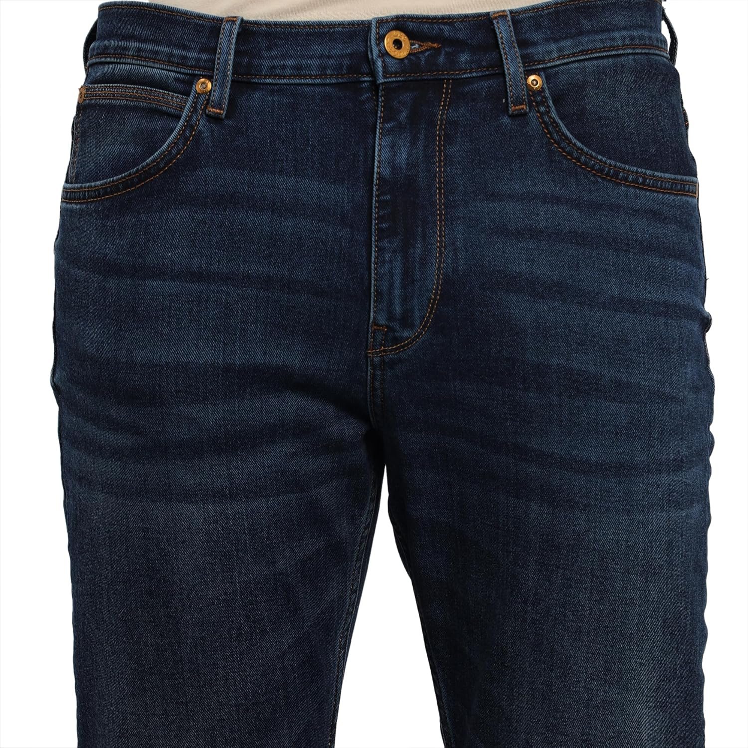 This pair of dark indigo, updated heritage jeans from Lee is a must-have for your denim collection. They are made from premium quality fabric of 87% cotton, 12% polyester, and 1% elastane for soft and comfortable wear. The classic straight fit with a vintage wash and styling gives them an effortless appeal. Team them with a denim shirt to complete the outfit.