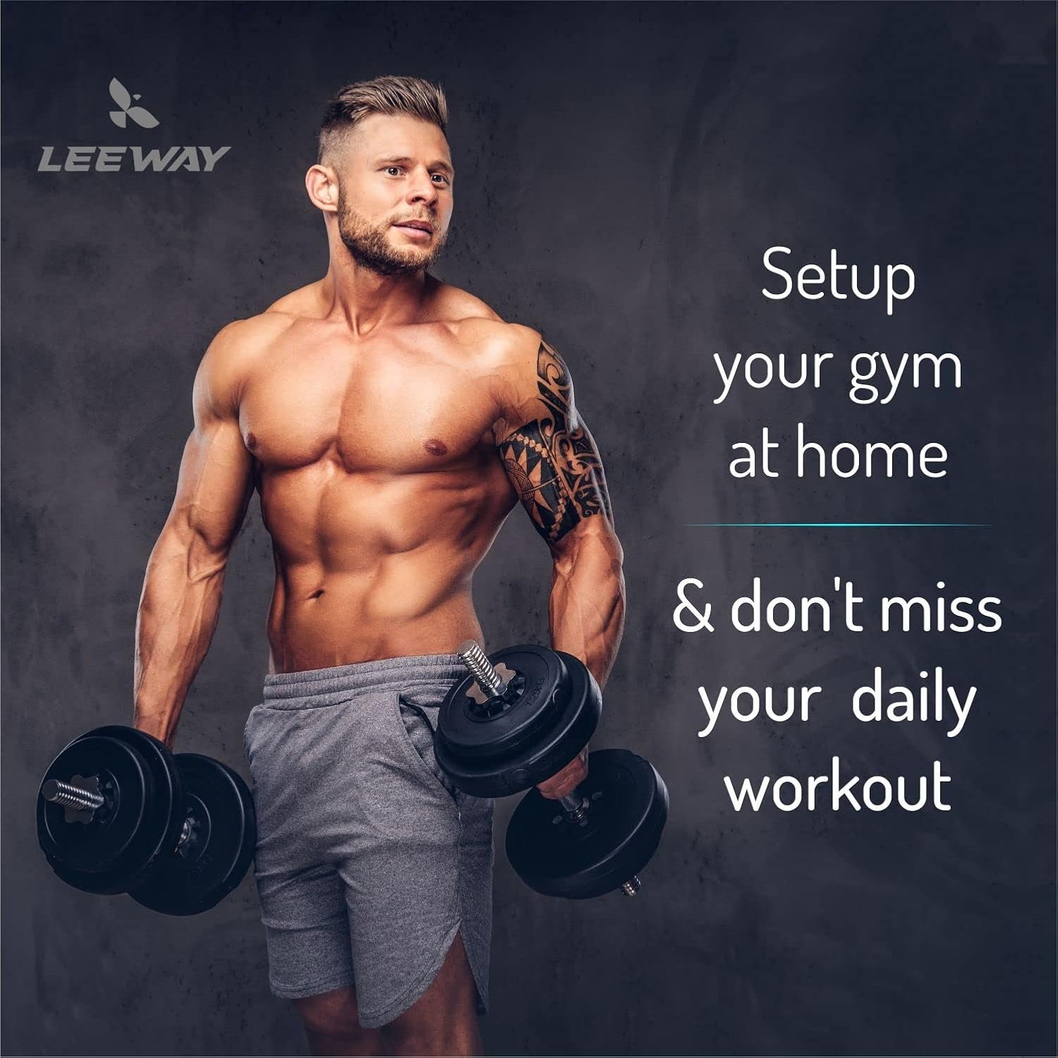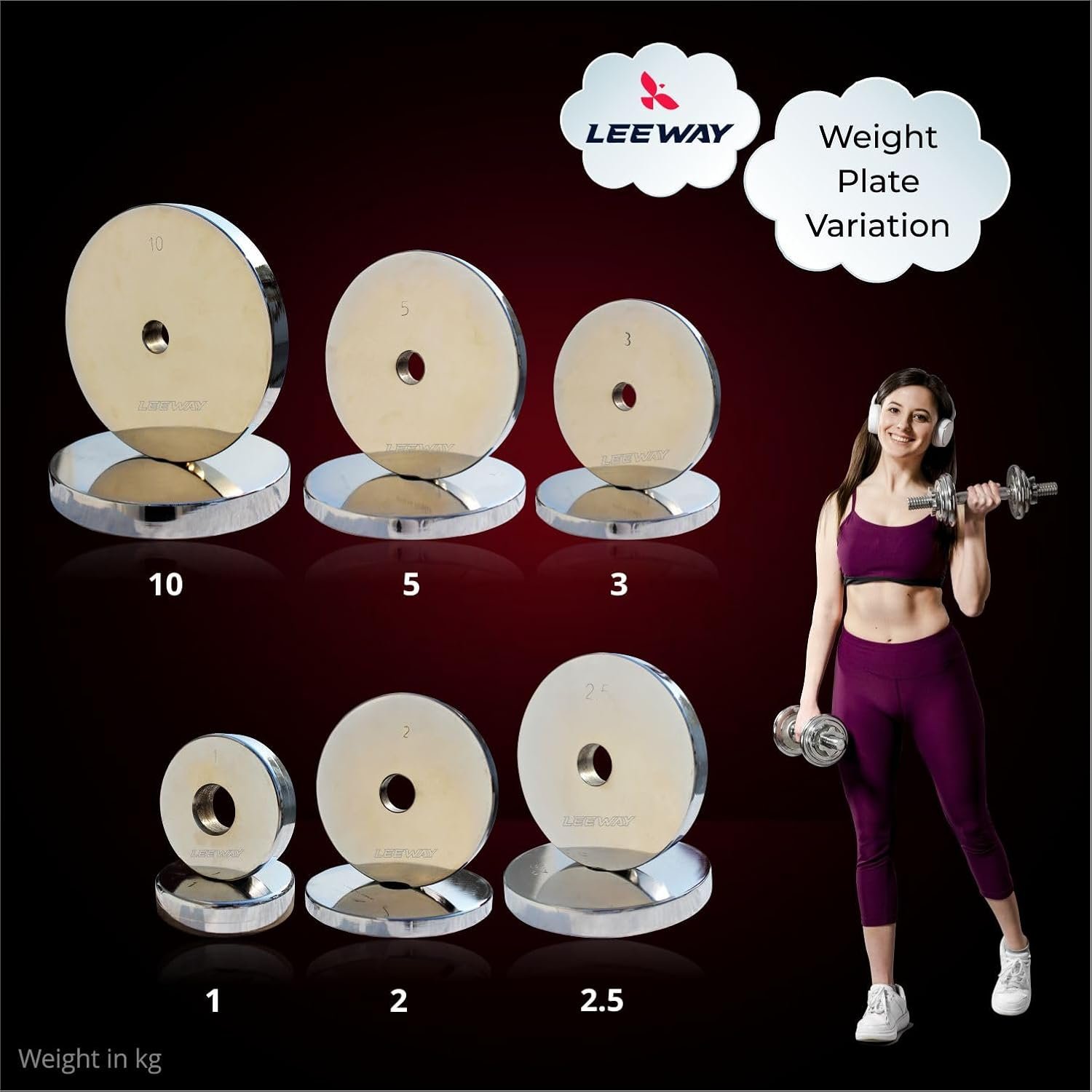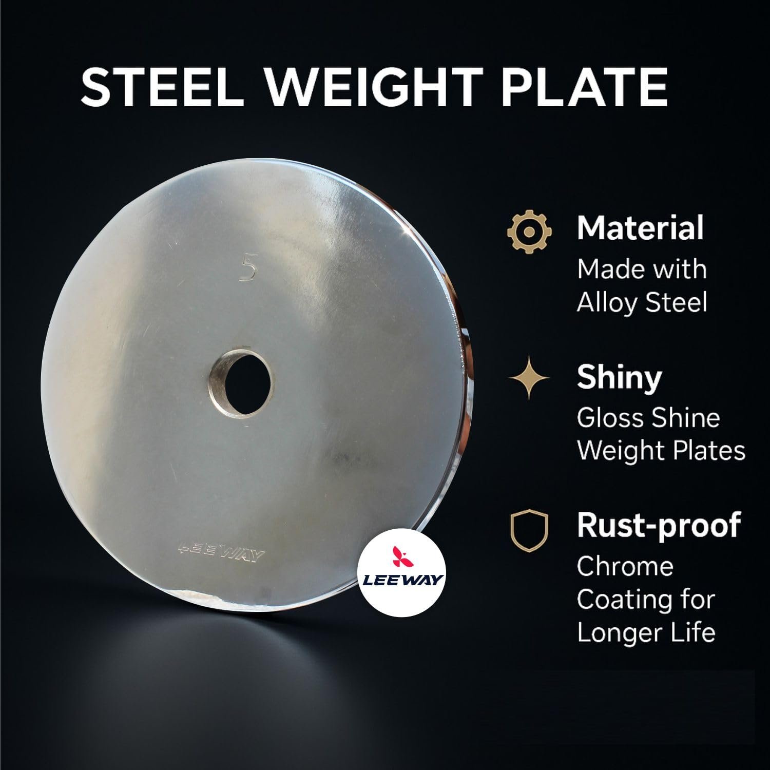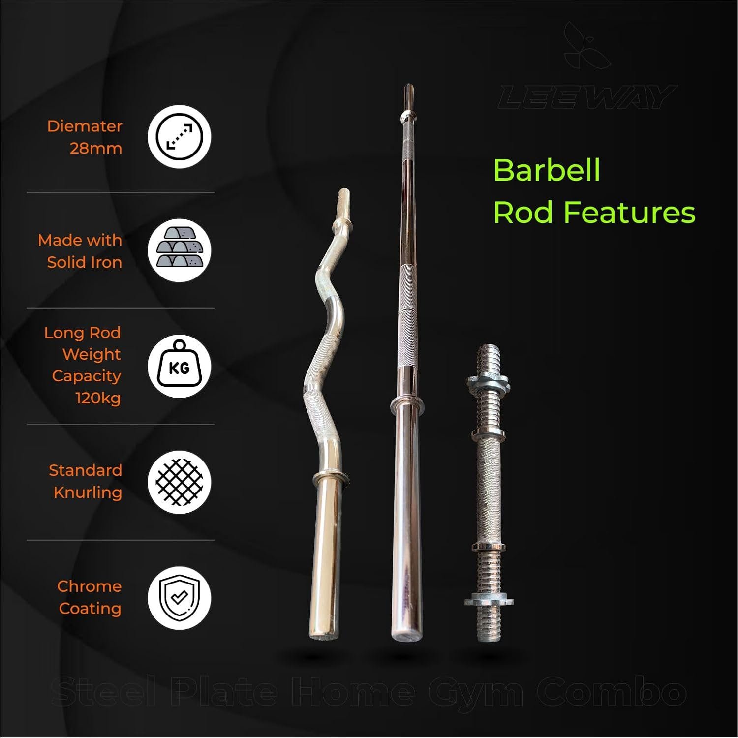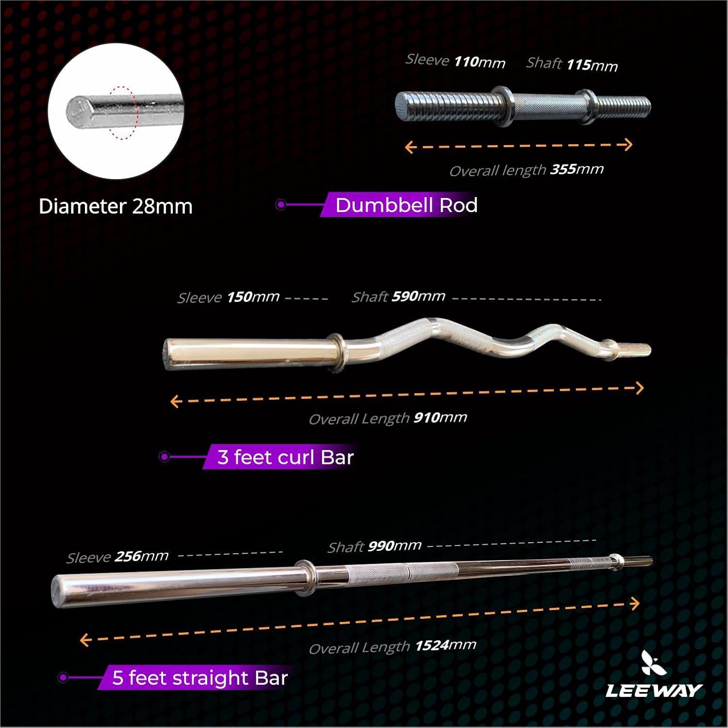 8 reviews for Leeway Steel Home Gym Set 40kg | 3Ft Curl Rod + 5Ft Barbell Rod (28mm) | Dumbbell Rods + Chrome Plated Steel Weight Plates | Full Body Gym Equipment Kit, Home Workout & Strength Training,(2X4+3X4+5X4)