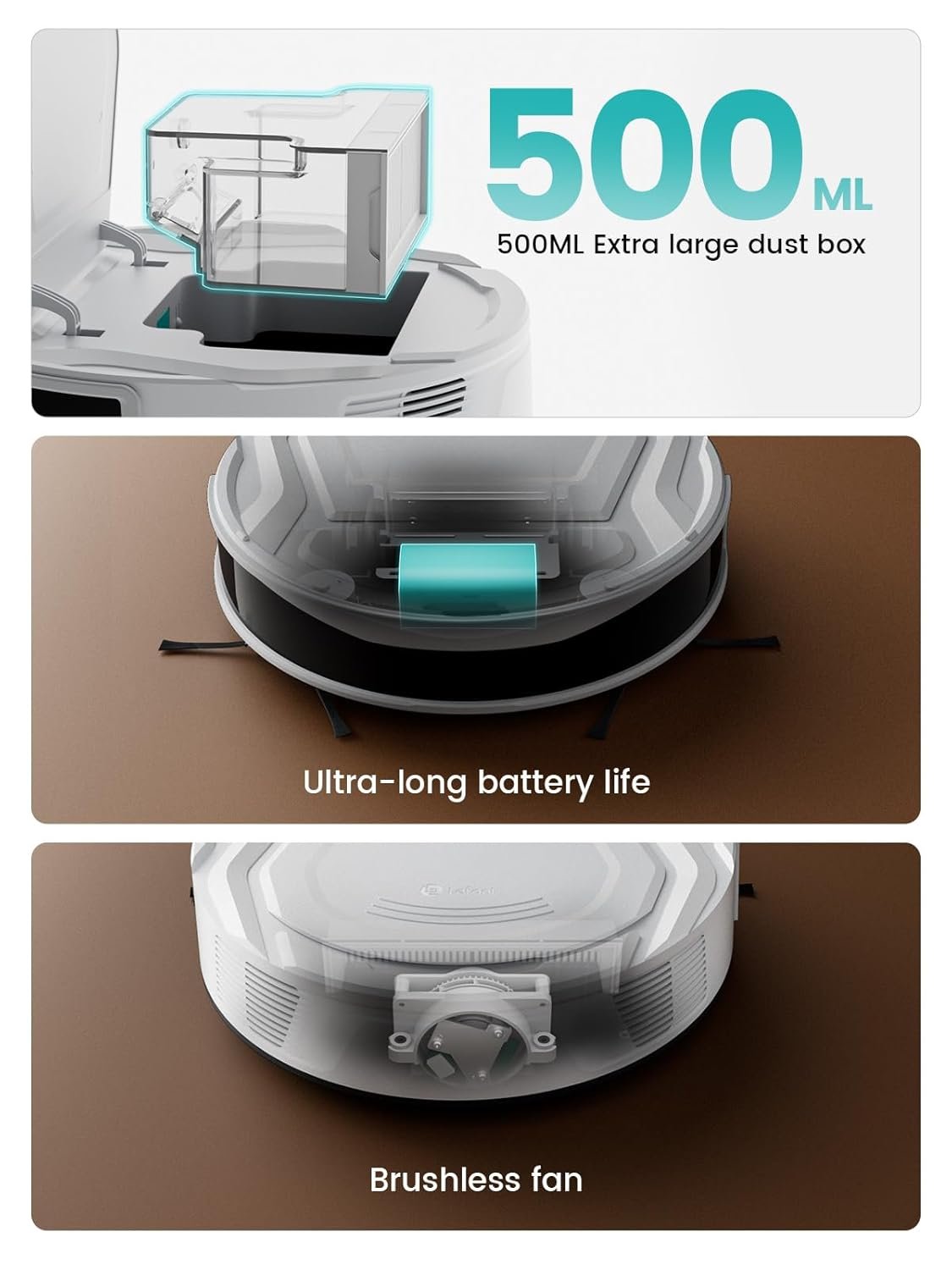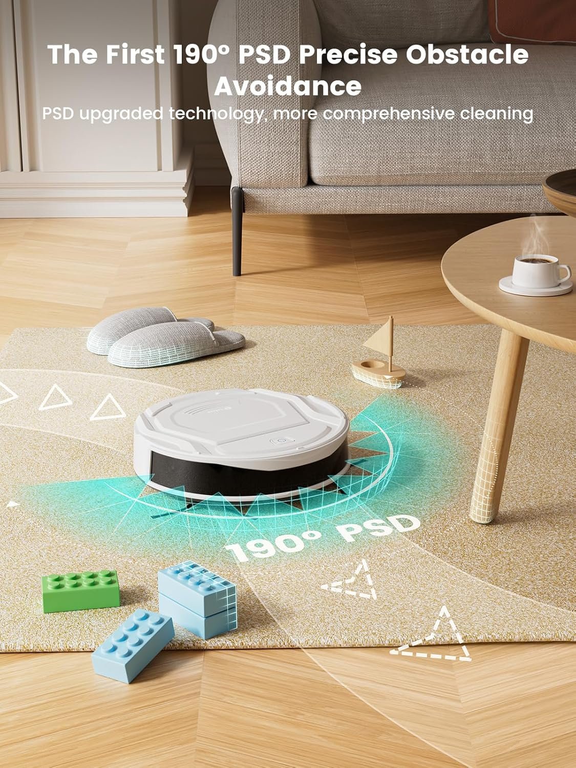 【FreeMove 3.0 Technology】It has a built-in 6D anti-collision infrared sensor that detects the surrounding environment through 720-degree omnidirectional detection, instead of mechanical collision. While reducing the size of the fuselage, it can more easily avoid obstacles and reduce failures caused by wear, deformation, dust accumulation, etc. It is able to detect stairs to prevent falls and easily climb carpets.