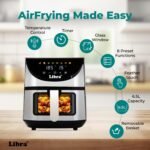 Stainless Steel Built: The Libra stainless steel airfryer is crafted with a rust-free, food-grade stainless steel interior—unlike aluminum units that may corrode over time. Built to last, this sleek and durable airfryer oven ensures safe and clean cooking for years.