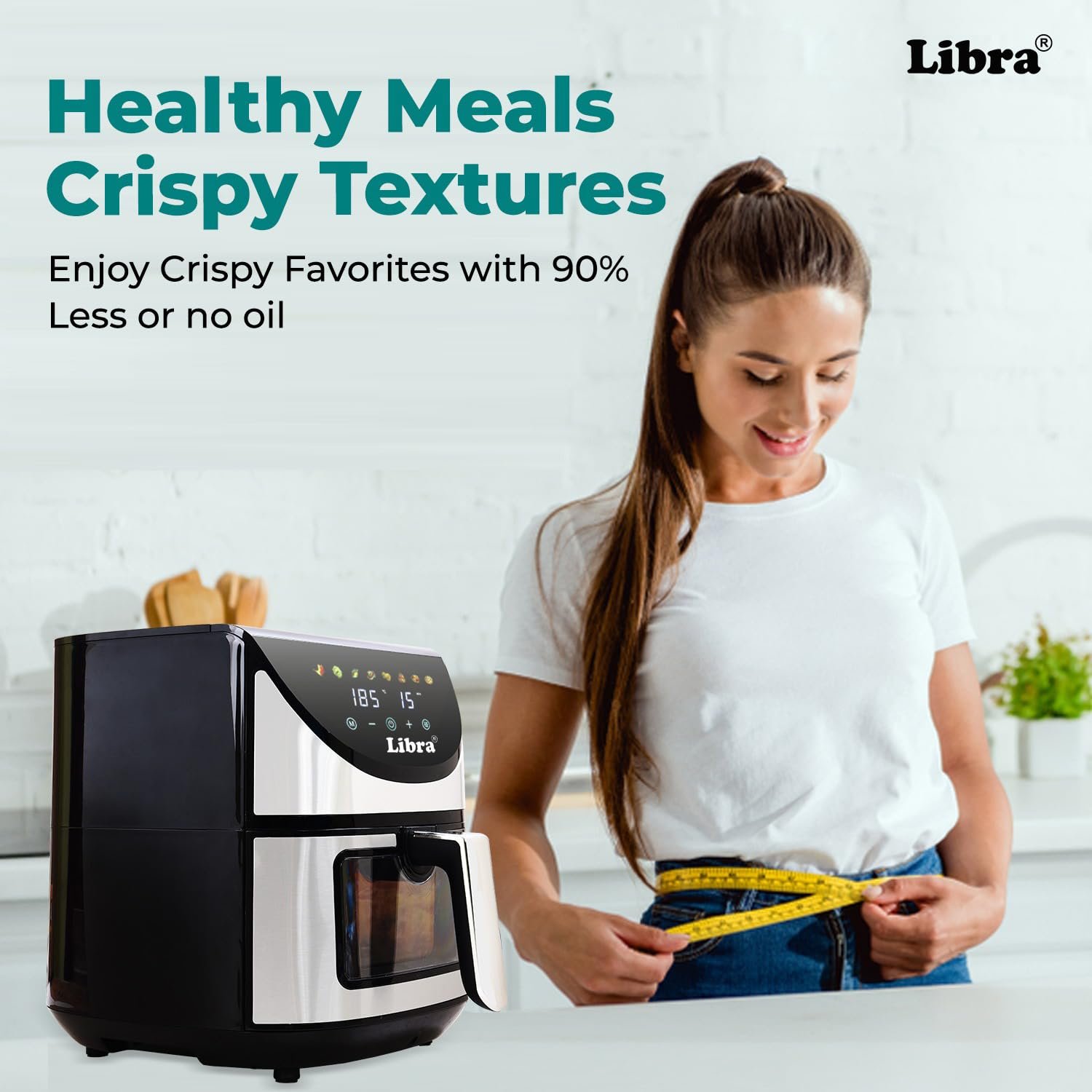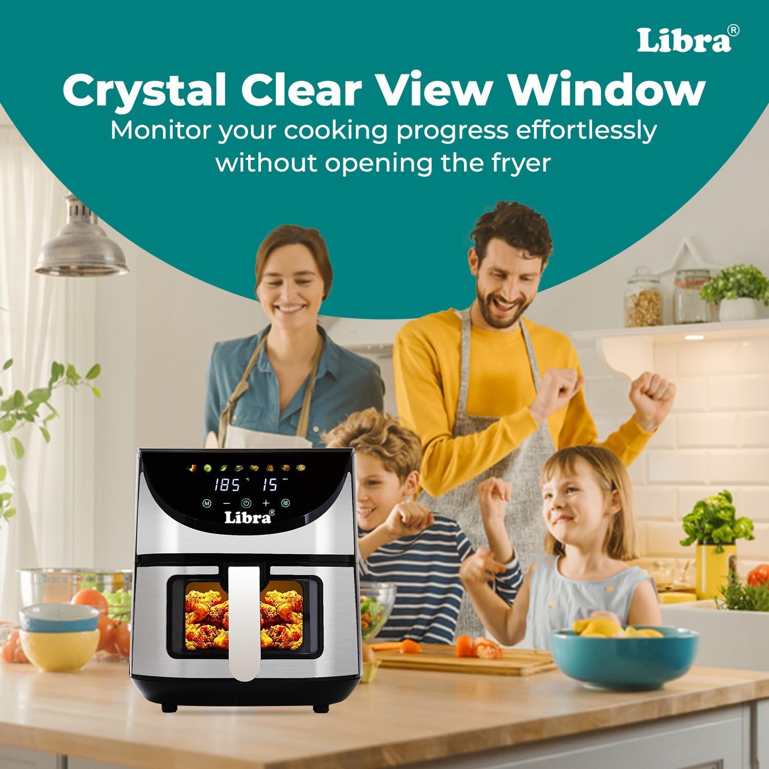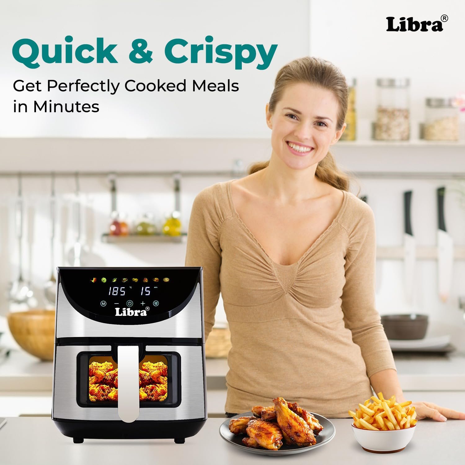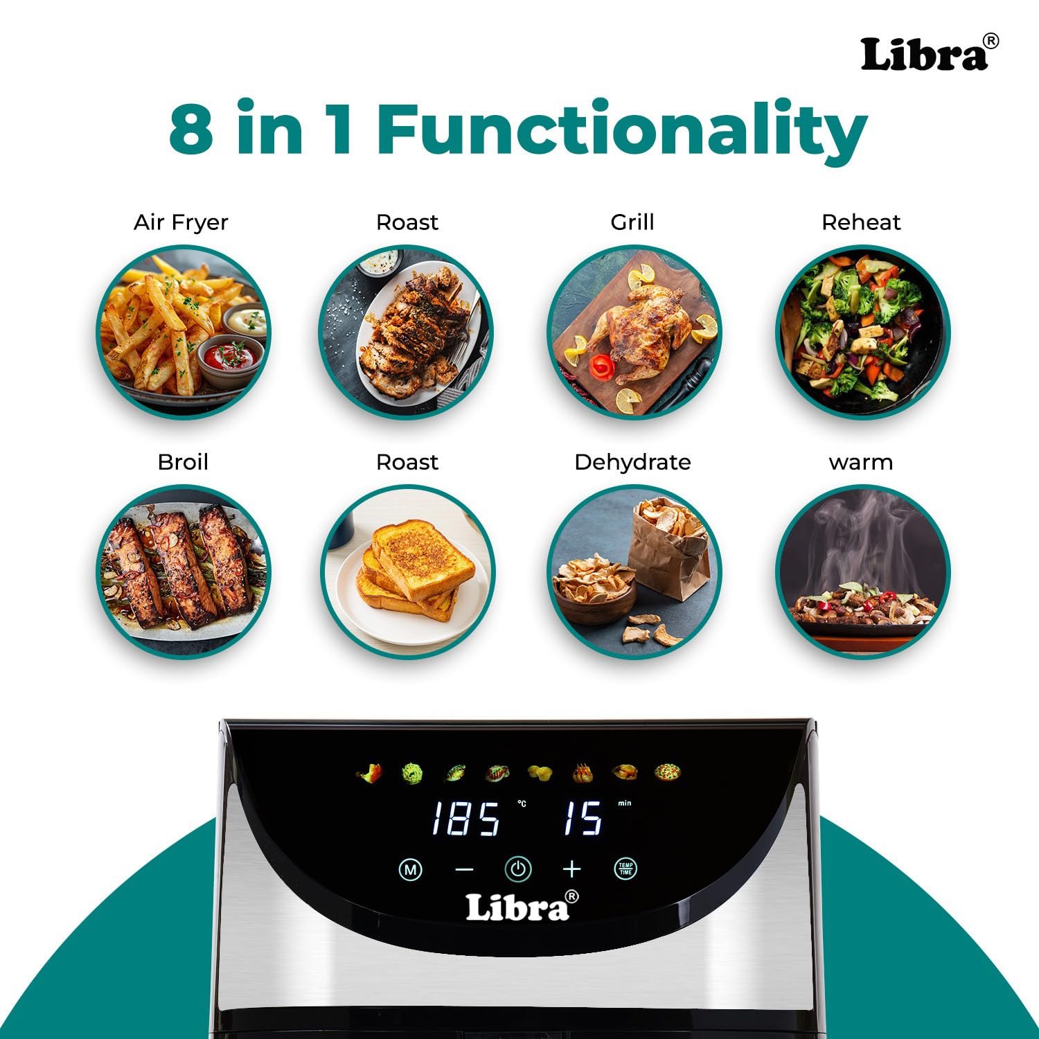 Libra 6.5 Liter Air Fryer Oven – 1740W Stainless Steel Air Fryer with 9-in-1 Digital Functions: Air Fry, Toast, Grill, Bake, Reheat & Keep Warm – Uses 90% Less Oil, Stainless Steel Interior