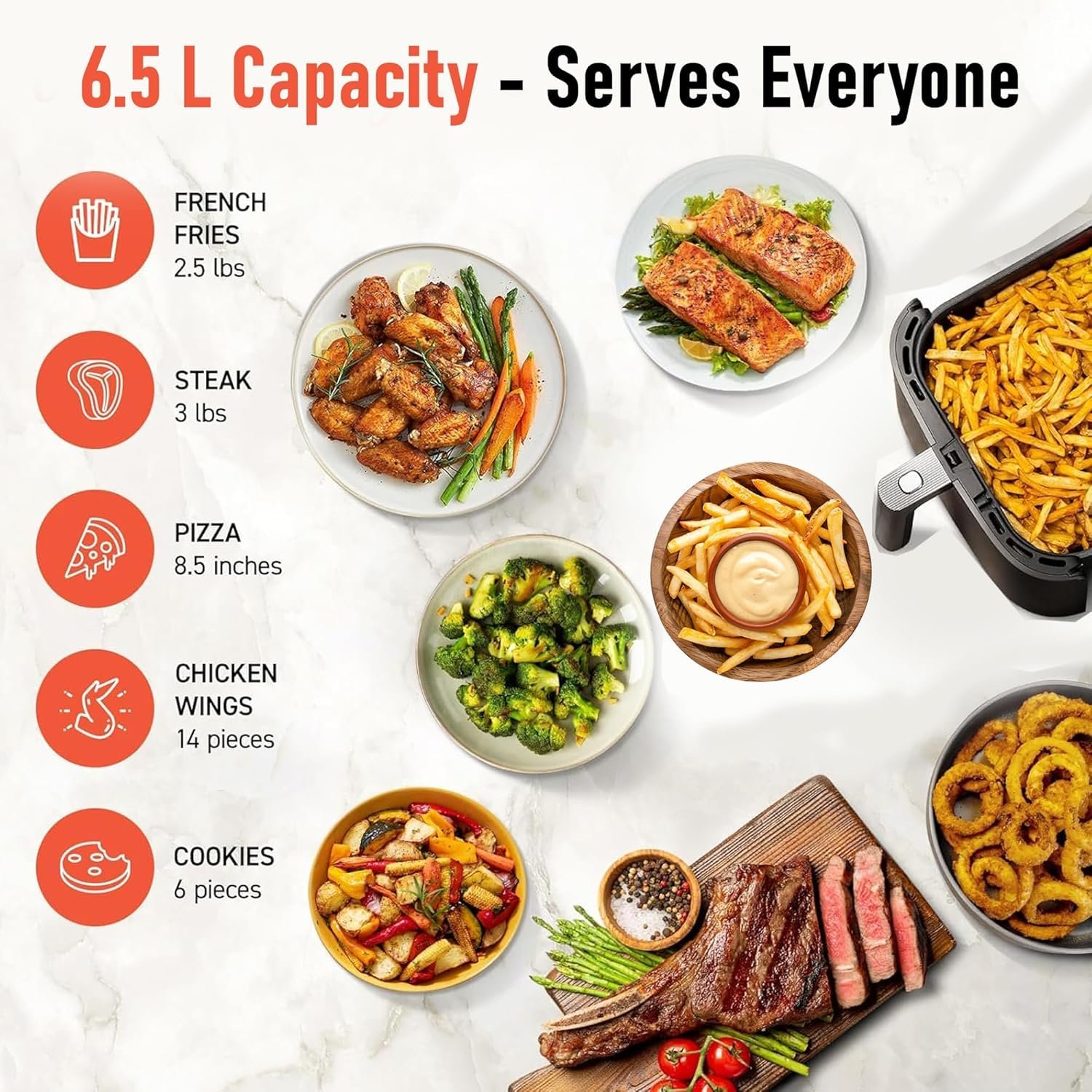 Larger Capacity: Ideal for home use, this air fryer stainless steel features a spacious 6.5-liter basket. It’s one of the top air fryers for families, allowing you to cook multiple items at once. Save time and energy while enjoying large meals with this efficient electric fryer.