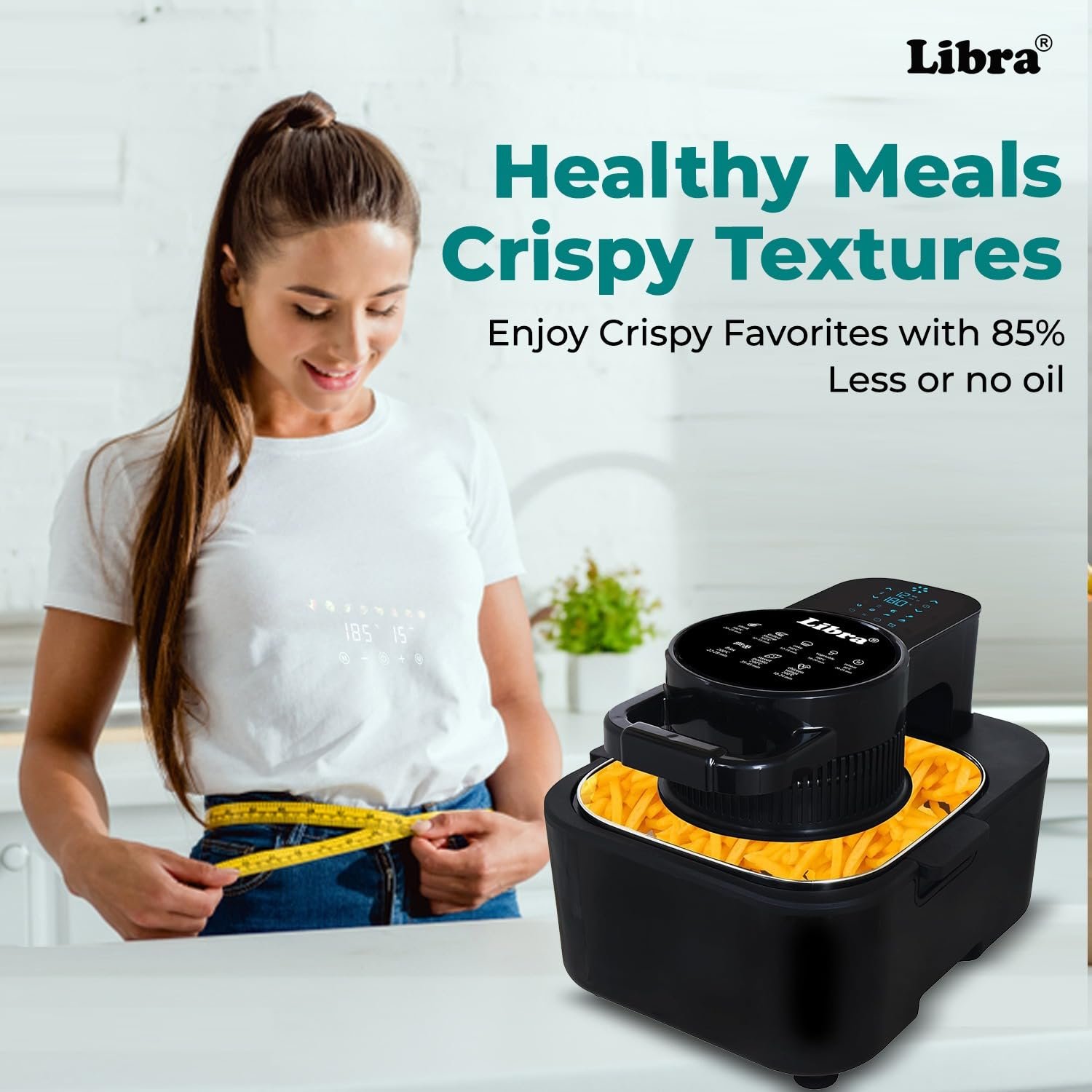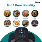 Libra 8 Litre Digital Air Fryer for Home | 1740 Watts Powerful Air Fryer | 9-in-1 Function: Air Fry, Toast, Grill, Bake, Reheat & Keep Warm | Fast & Even Cooking | Feather Touch LED Display Black