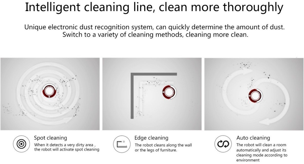 Three kinds of cleaning modes (Spot cleaning, Edge cleaning and Auto cleaning) ensures that it covers the entire place to be cleaned.