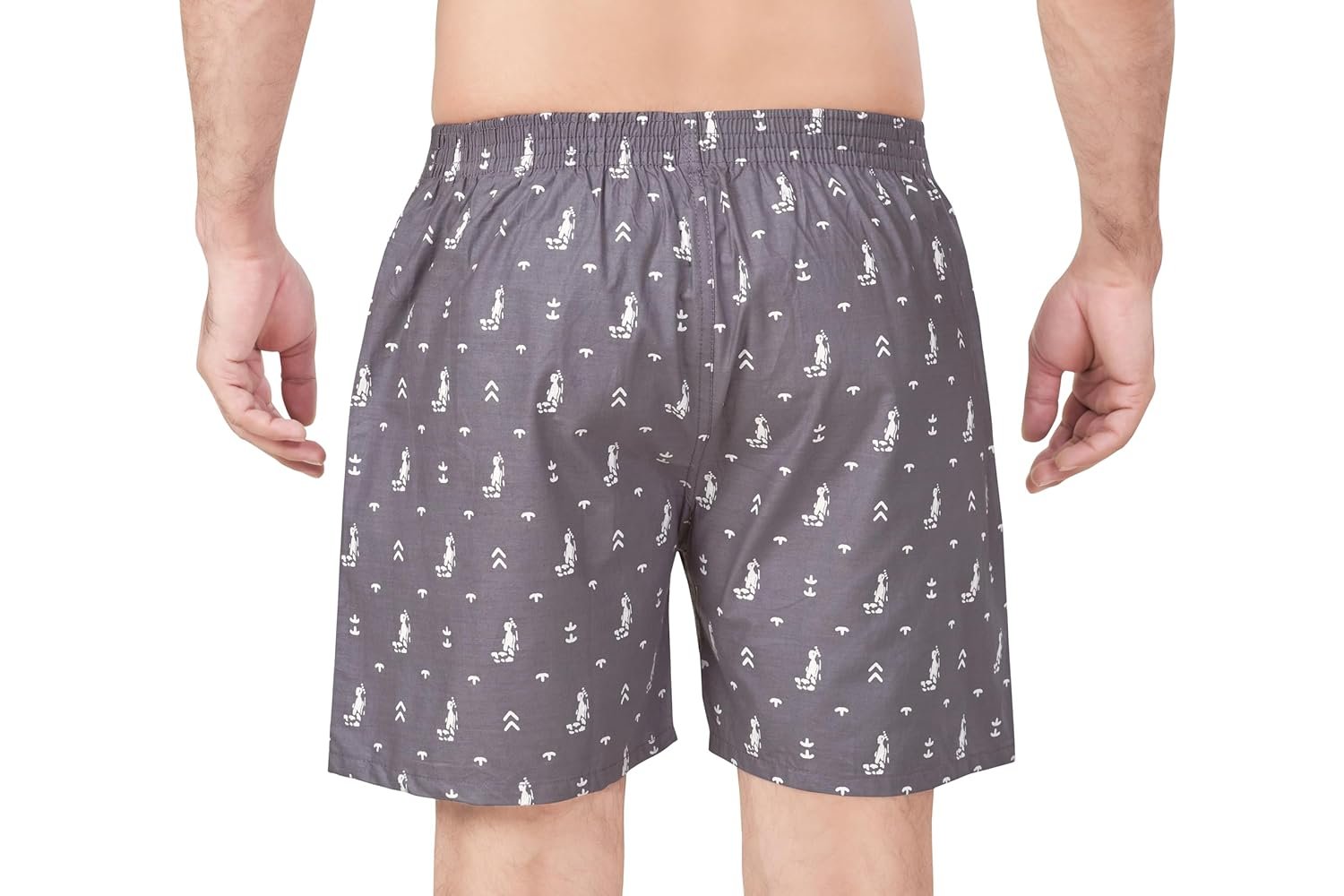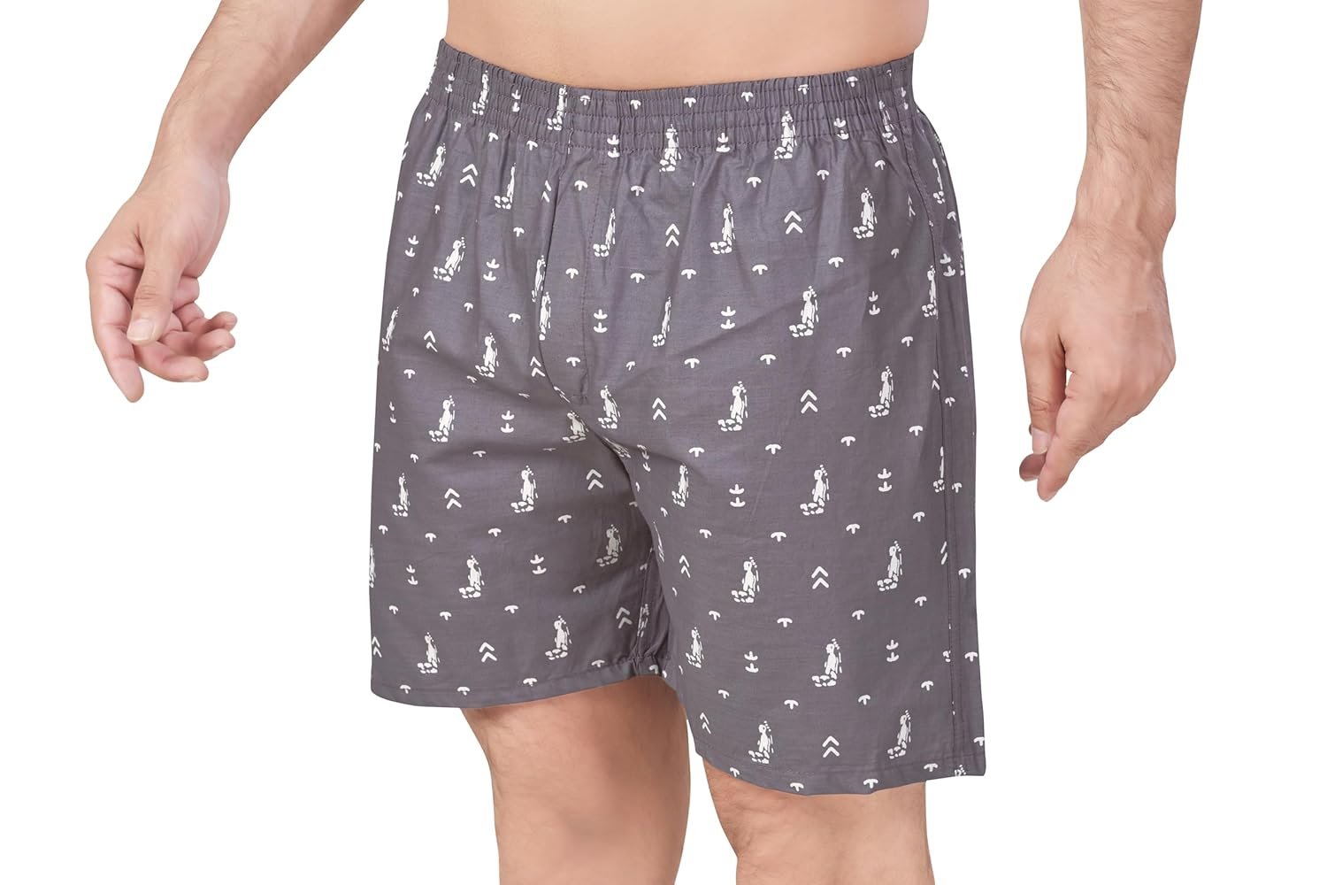 Men Boxer Cotton Printed Casual Underwear Half Short Pant-Regular Fit (M L XL XXL) (Combo Pack of 2) (T.Grey-T.Cream)