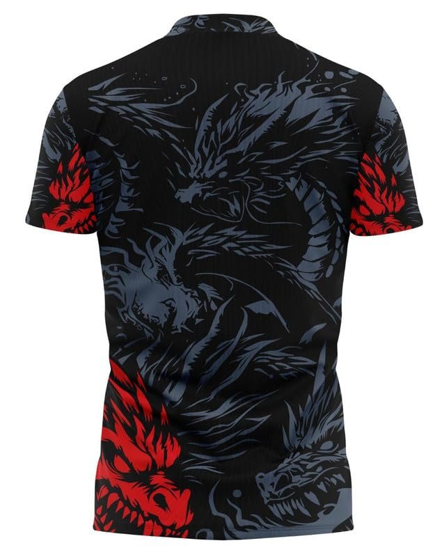 Be the first to review “Men’s Dragon Print Sports Jersey | Black & Red Graphic T-Shirt”