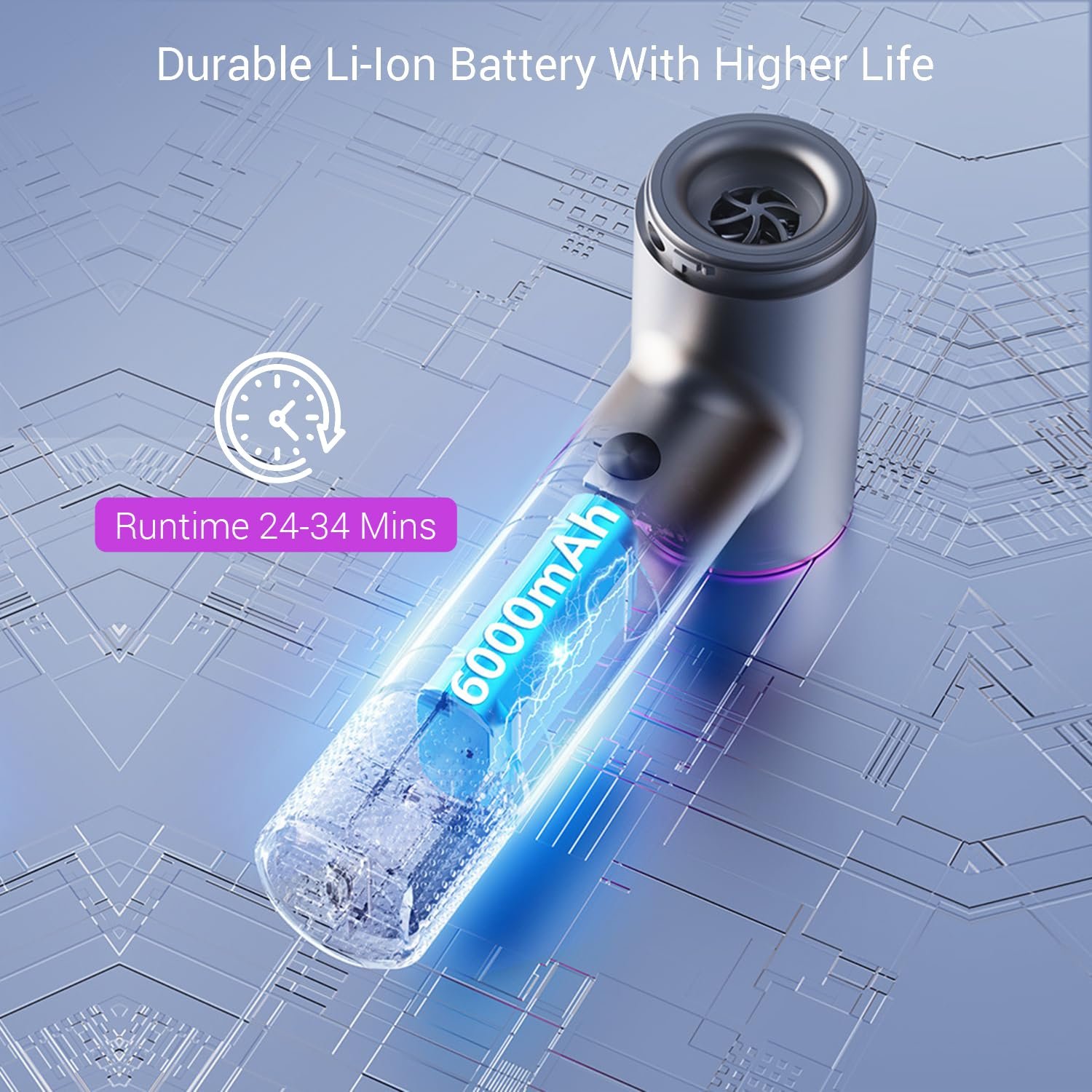 BATTERY POWER – With A 6000 mAh Li-Ion Battery Delivering 24-34 Minutes Runtime, It Allows For Quick Cleaning Sessions.