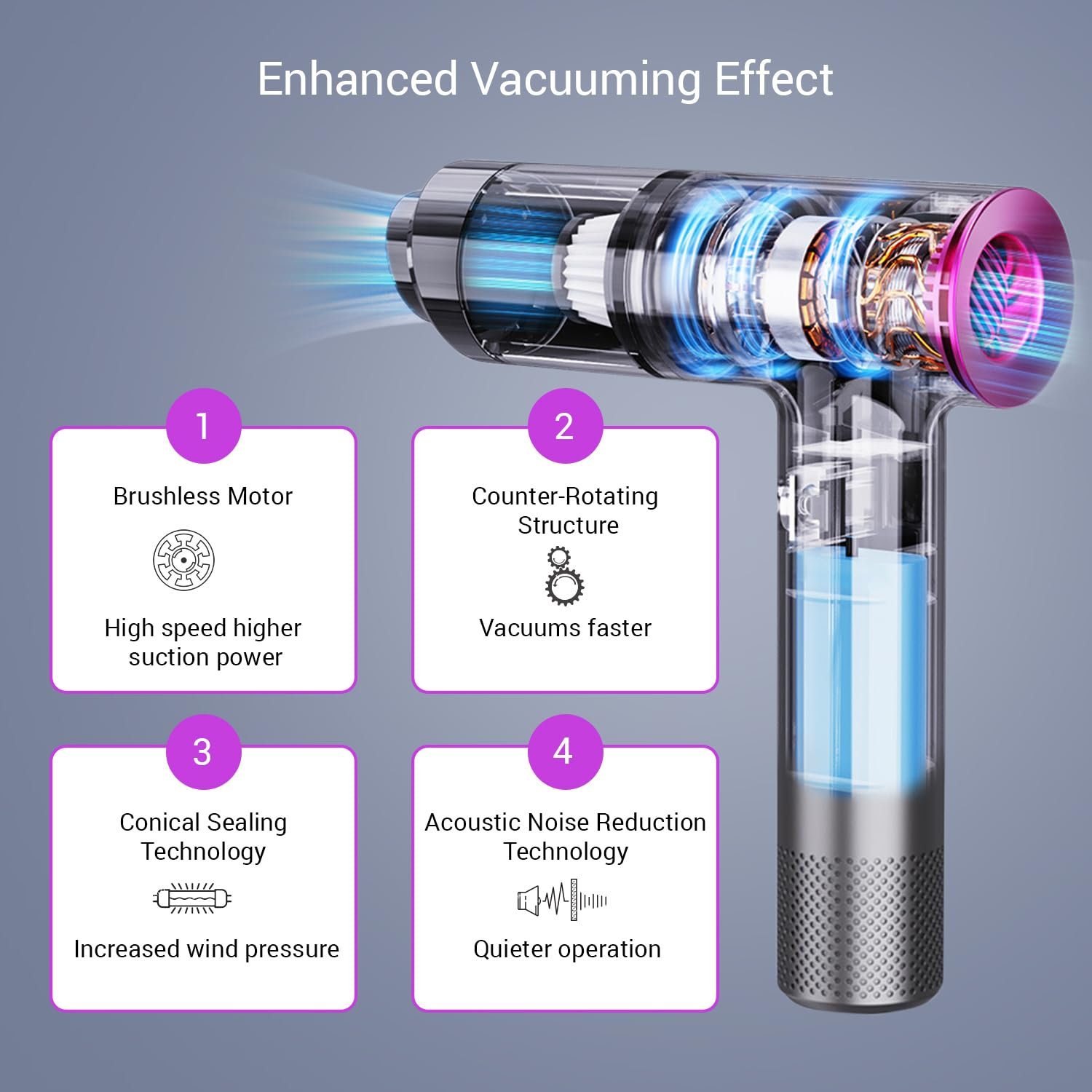 VERSATILE CLEANING ATTACHMENT – You Can Clean Your Car, Home, Or Office with 4 attachments, Crevice Nozzle, Cleaning Brush, Air Blow Nozzle, and HEPA filter to clean even the finest dust.