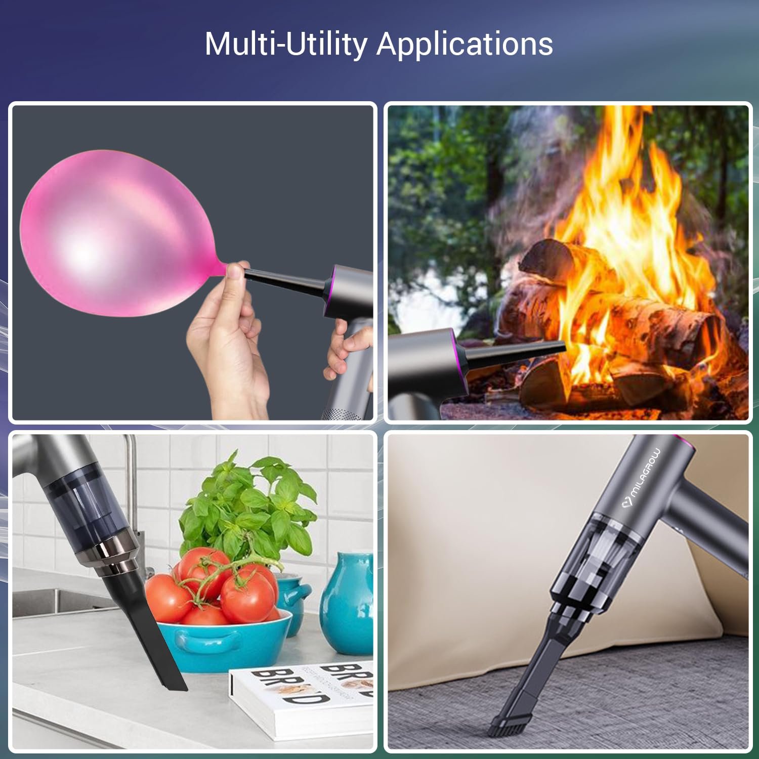MILAGROW Duster Lux Portable Vacuum Cleaner with Powerful 14000Pa Suction, Handheld Portable Vacuum Cleaner & Blower, Cordless & Rechargeable with Multipurpose Accessories for Car/Home/office/Outdoors