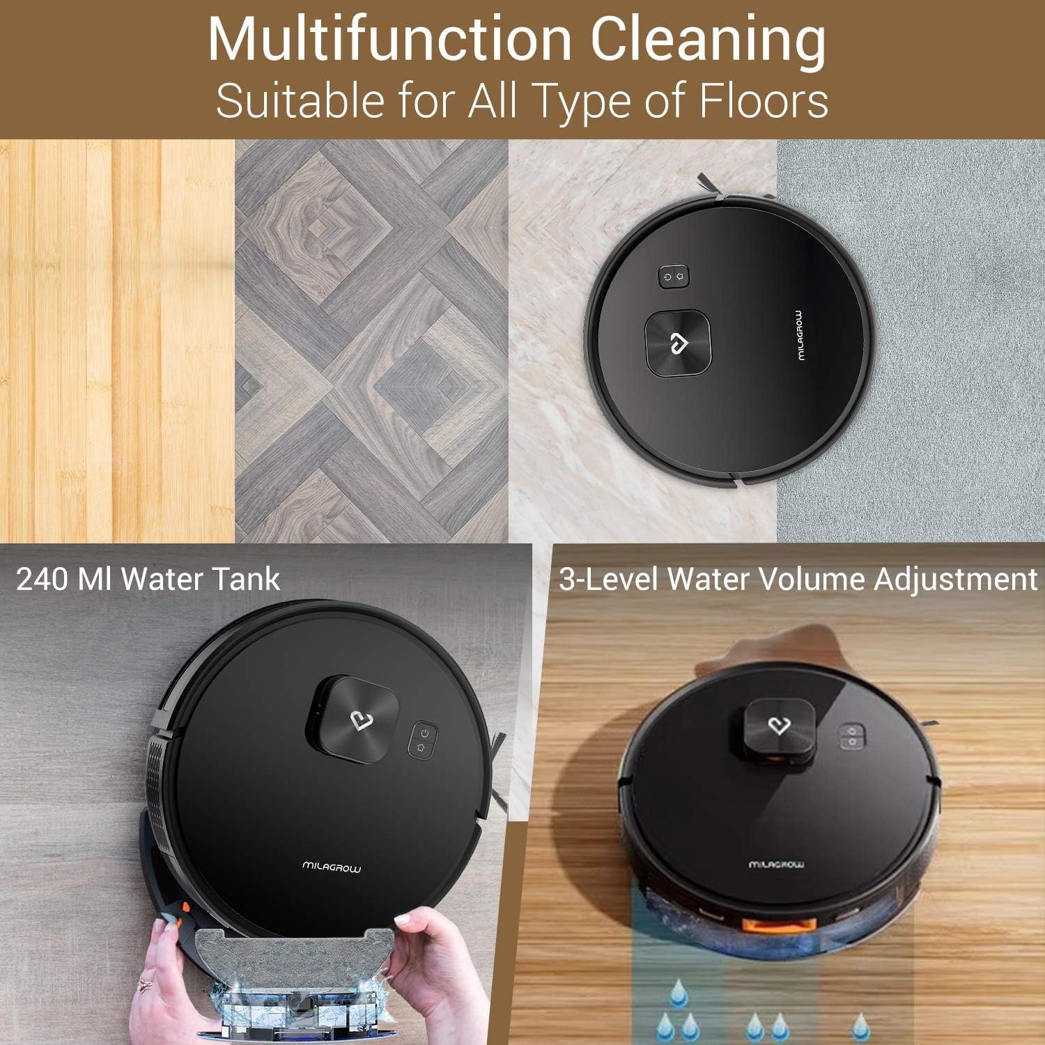 MILAGROW iMap 16 Galaxy Robot Vacuum Cleaner with 10000Pa Strong Suction, Automatic Self-Charging, Remote/Wi-Fi/App/Alexa Control, Ideal for Pet Hair, Hard Floor and Daily Cleaning (Black)