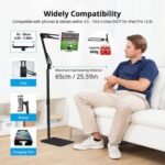 Whether you are standing, sitting, lying on a recliner, or in the bed, this flexible tablet floor stand will free your hands and helps you find the perfect view to watch movies, live broadcast, Tik Tok, vlogging, play games, or read music scores when practicing guitar or piano.