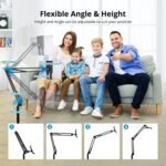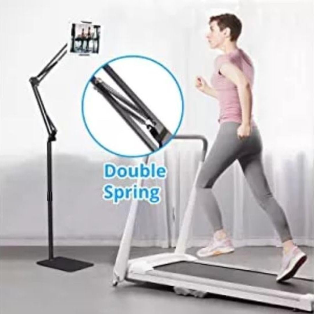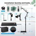 The overhead phone mount with the proper weight of the metal base steadily supports the stand, prevents it from falling down; no damages to the floor due to the non-slip rubber pad beneath the base.