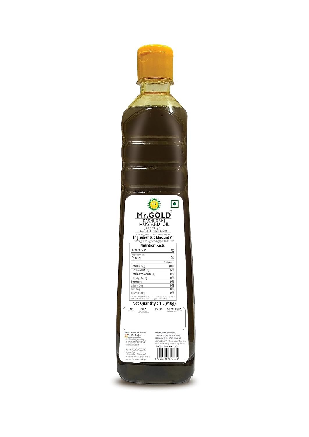 Mr.Gold Cold Pressed/Kachi Ghani Mustard Oil Pet,1 L | Pungent aroma | Light and easy digestion oil | No added preservatives – Total 1L