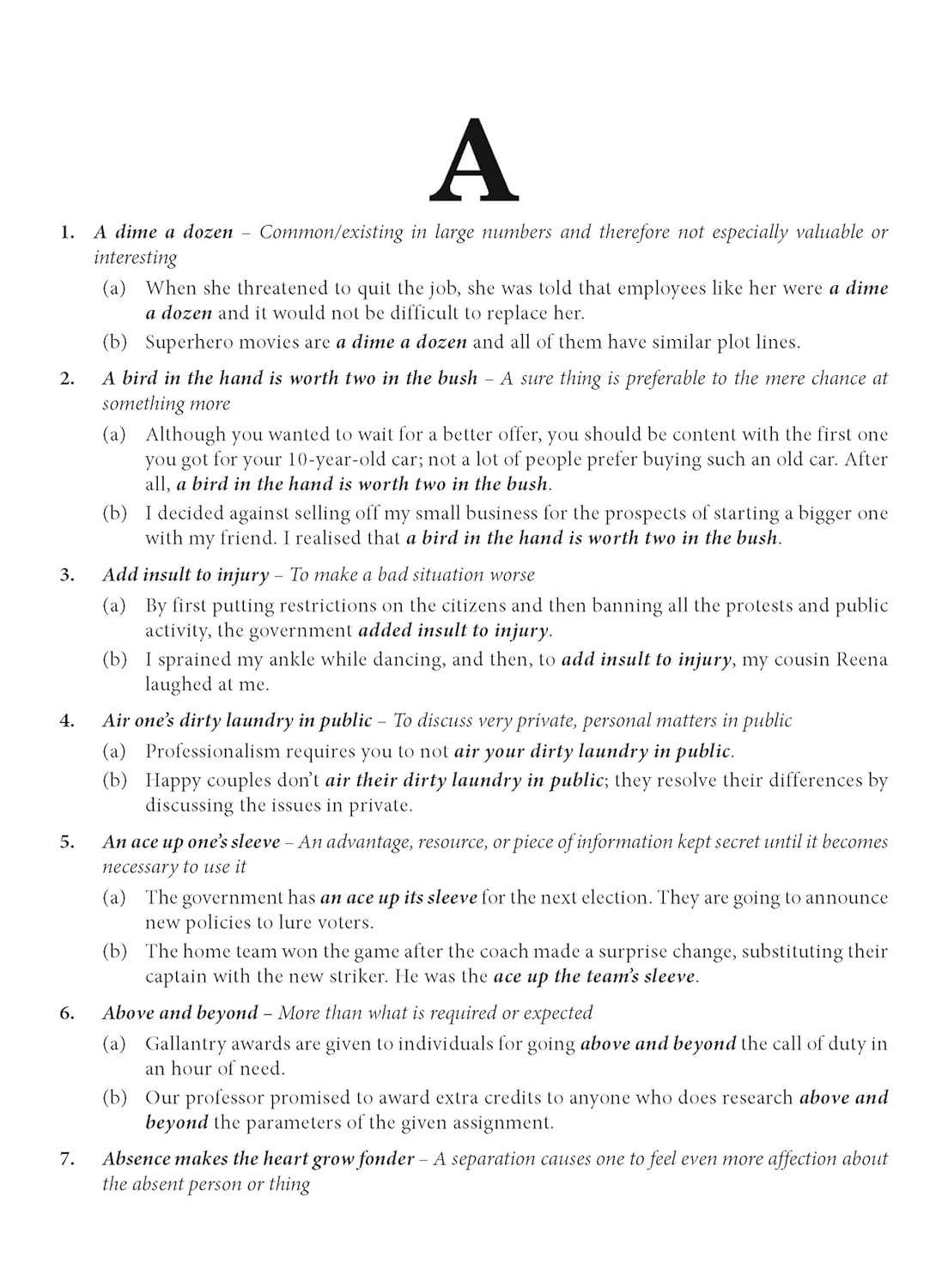 Comprehensive collection of idioms, proverbs, phrases and phrasal verbsEach entry includes clear & concise meaningFocussed on vocabulary enrichmentExamples to understand its usageCaptivating illustrations