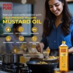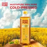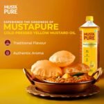 MustaPure Cold Pressed Yellow Mustard Oil 1 Litre Cooking Oil, Unrefined, Naturally Cholesterol Free, A1 Grade Real Mustard Seeds for Natural Aroma & Flavour for Roasting, Frying, Baking – PET Bottle