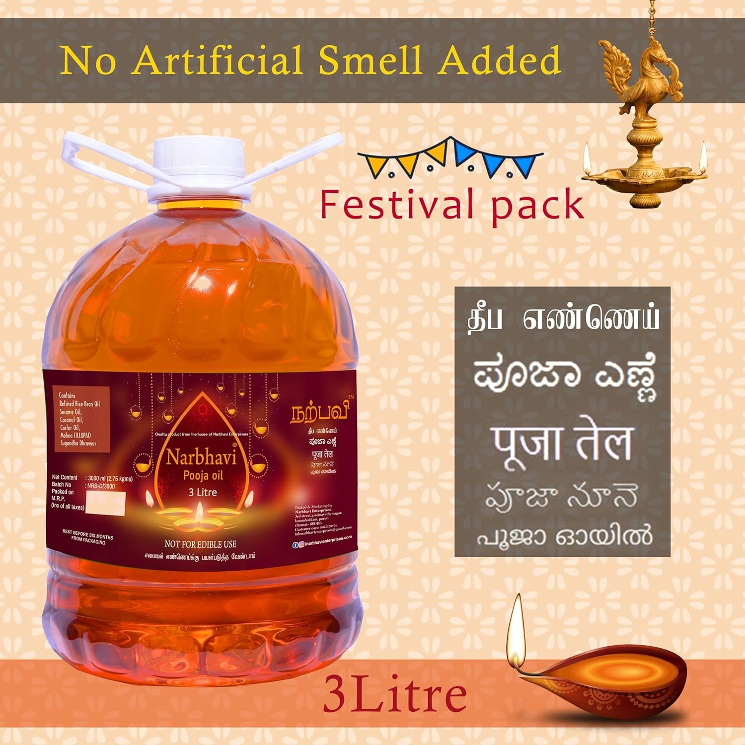 Narbhavi Pure Panchguna Deepam Pooja Oil | Til Oil for Pooja | Daily Pooja oil | Pooja Lamp Oil | with Jasmine Fragrance, Deepam/Diya/Lamp Oil 3Litre…