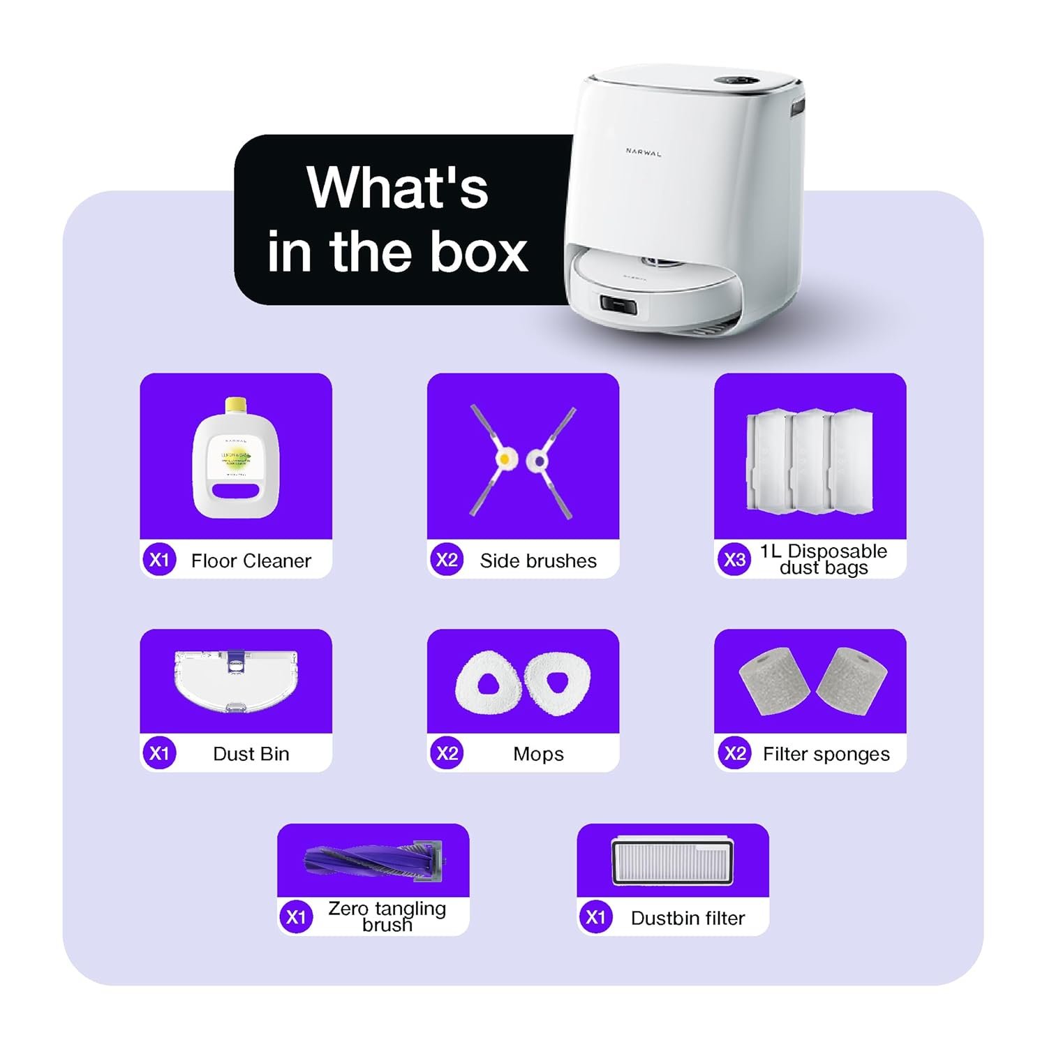 🟣Enhance the longevity and performance of your robot vacuum cleaner by using only the high-quality floor cleaner provided with the product. and available on amazon. Using alternative cleaners may damage the robot.