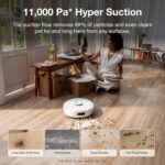 Ultra-Strong 11,000Pa Suction Power Effortlessly lifts dust, pet hair, and debris from carpets and hard floors.