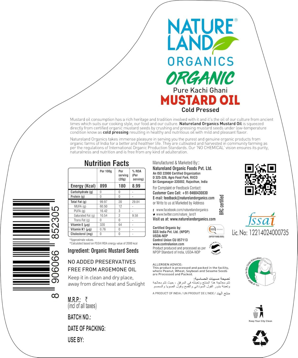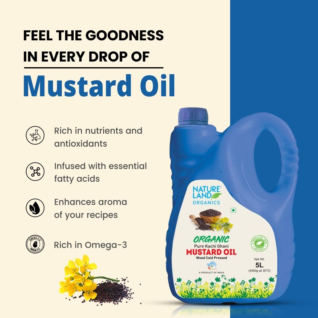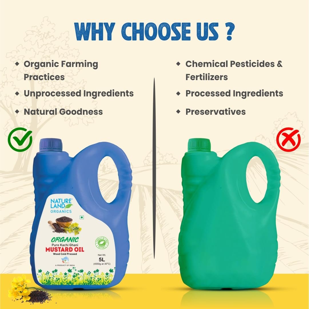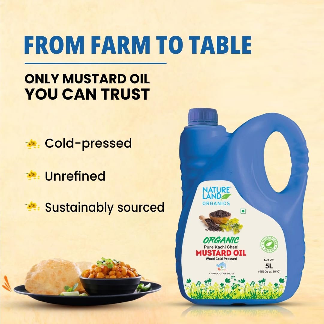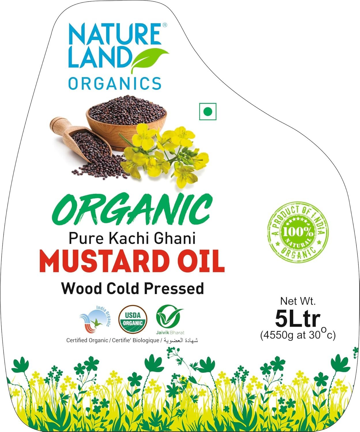 Natureland Organics Kachhi Ghani Pure Mustard Oil 5 Ltr – Cold Pressed