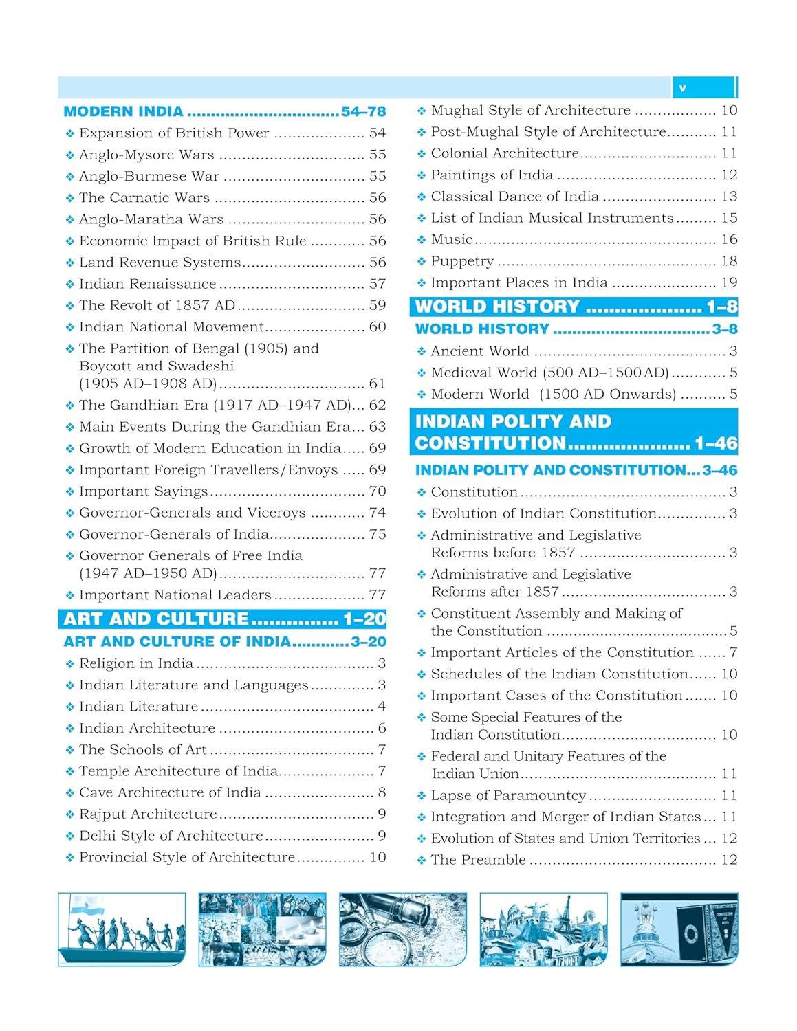 ◆ The book covers the key subjects like Indian History, Art and Culture, World History, World and Indian Geography, Environment & Ecology, Indian Polity and Constitution, Indian Economy,