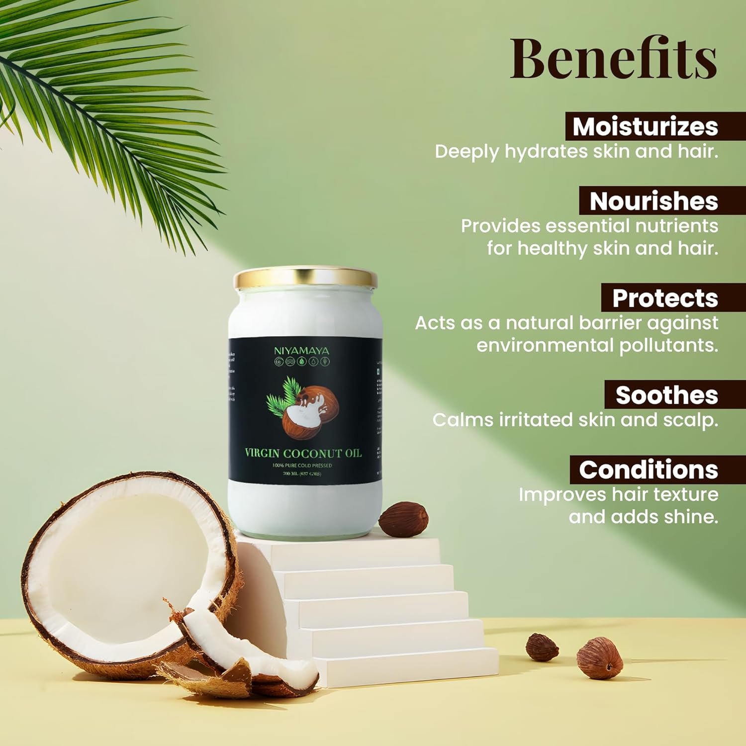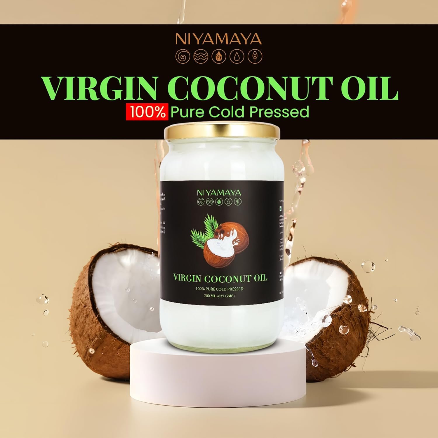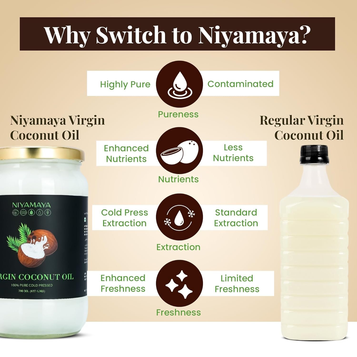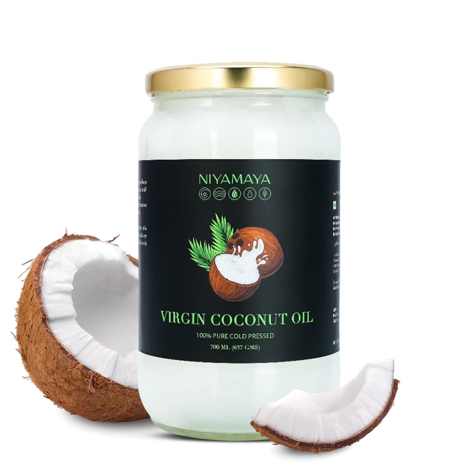 NIYAMAYA Cold Pressed Virgin Coconut Oil 700 ml |100% Natural & Unrefiend | Multipurpose Usage Oil for Cooking, Hair & Skin No Preservatives Virgin Coconut Oil for Baby | Chemical Free