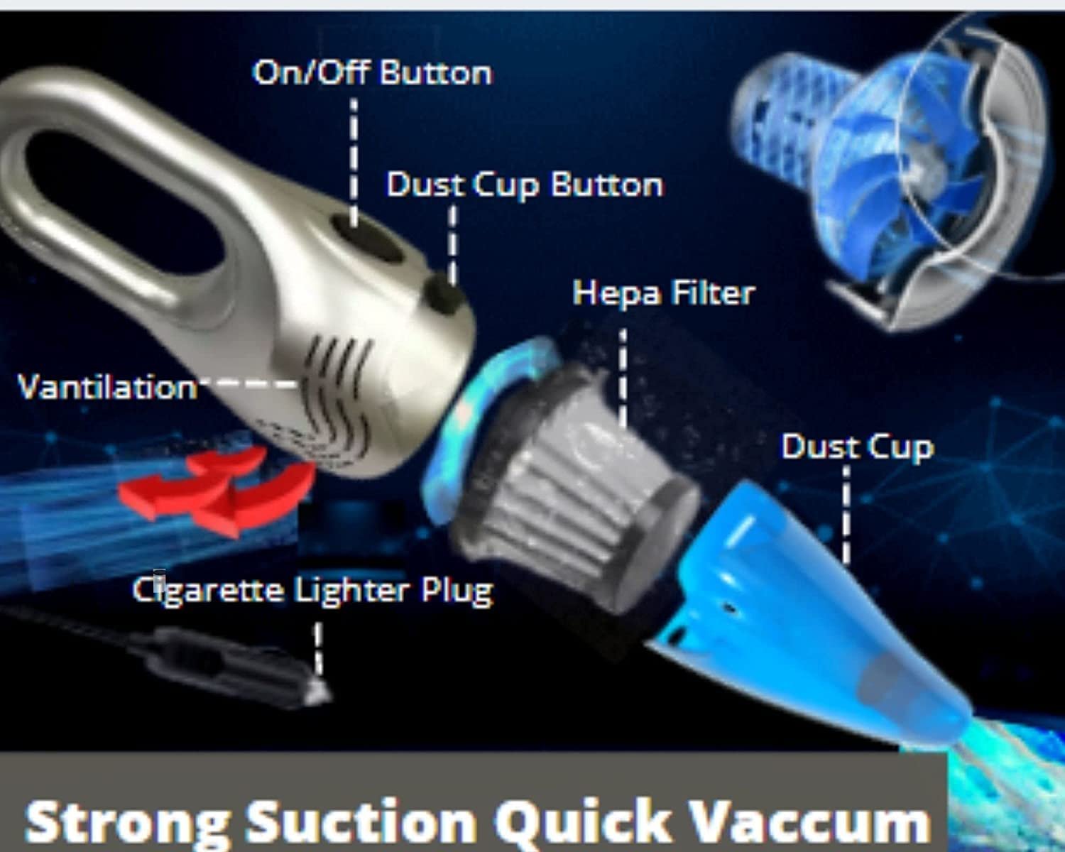 Due to heavy duty motor inside this model produces a 3500pa or 3.5kpa suction power which is sufficient enough to suck any dirt particle in a single shot weighing equivalent to 2 smart phones tied together. More than sufficient to catch all kinds of dirt particles usually found inside a car.