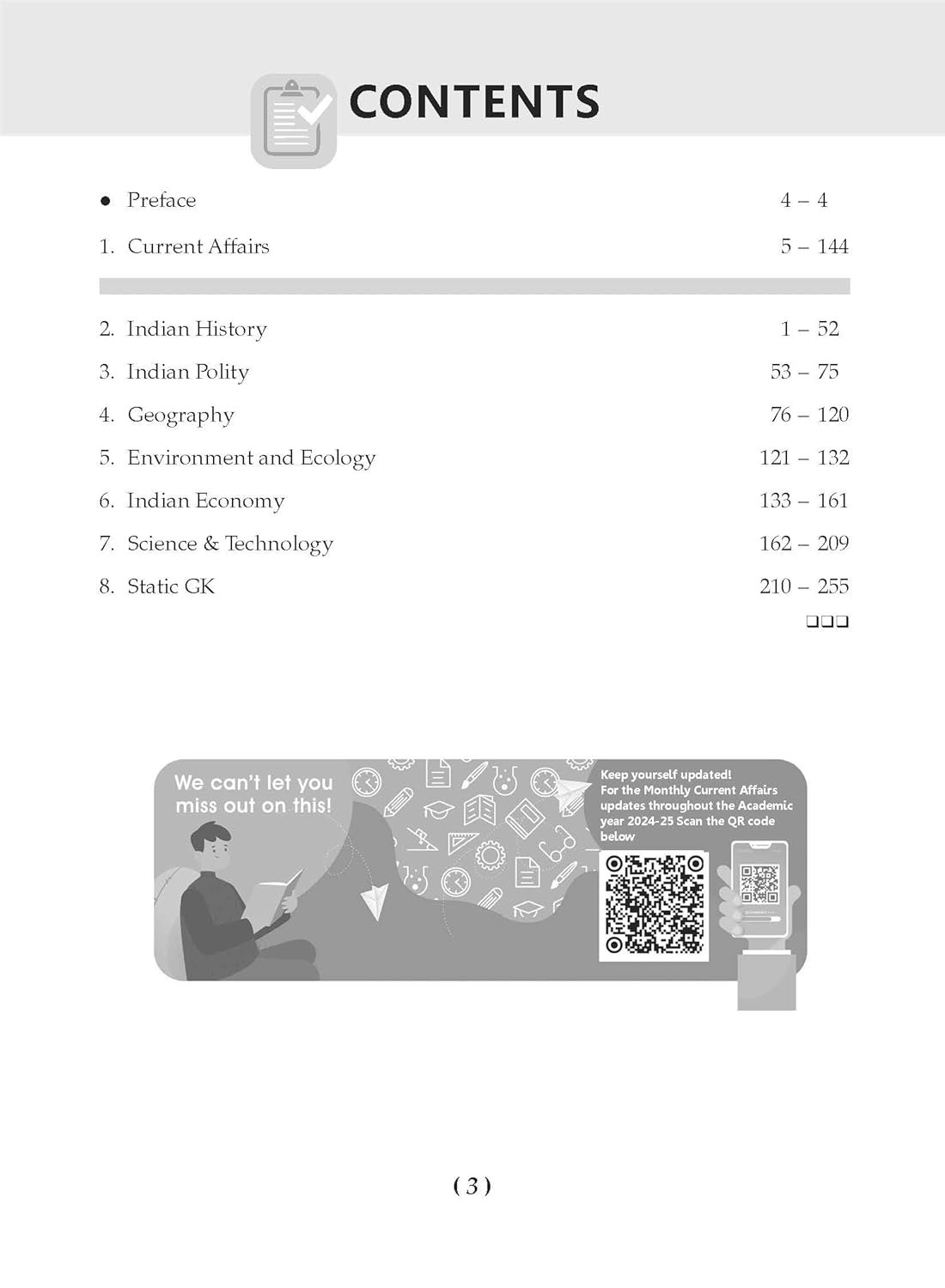 Real-World Insights: Practical integration of general knowledge and current affairs for daily application and exam readiness. Comprehensive Coverage: Month-wise updates on 2023–24 current affairs, ensuring relevance and completeness. Visual Learning: Enriched with infographics, charts, and tables for quick comprehension and retention. Quick Facts Repository: A compact collection of one-liners for rapid revision and exam-oriented preparation
