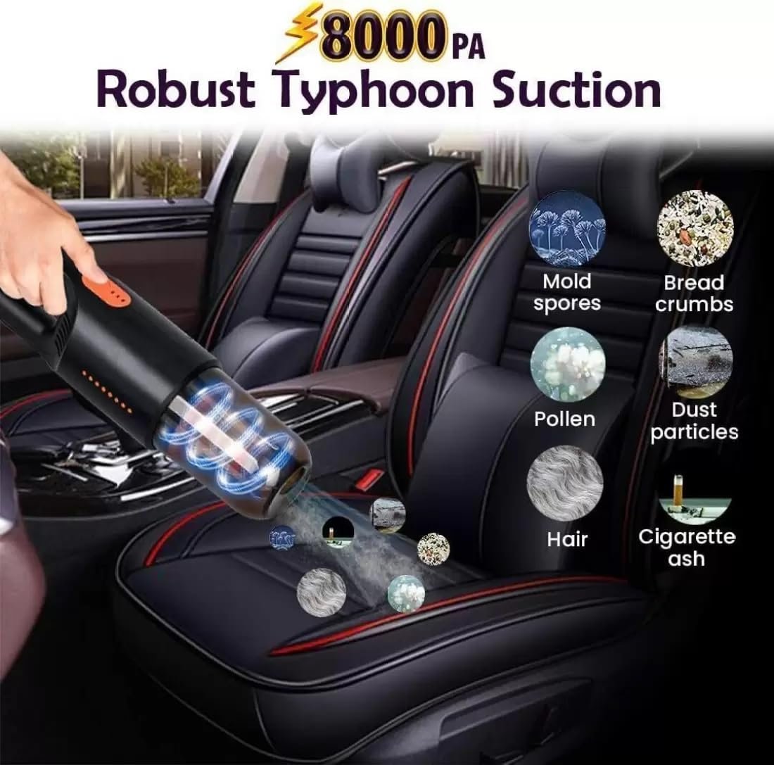 2️⃣12000Pa strong suction can suck up the smart phone High speed driven fan impeller rotates to make vacuum cleaner Inside the formation of instantaneous vacuum inside and outside the negative pressure difference, efficient dust collection