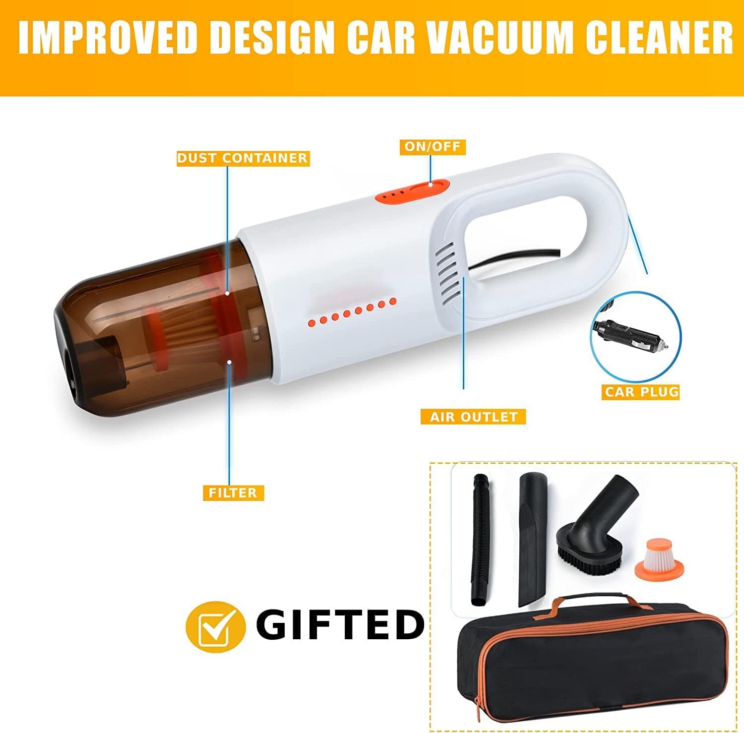 1️⃣120W high power motor Suction lasting, no attenuation, no heating, effective and fast, remove stubborn dust