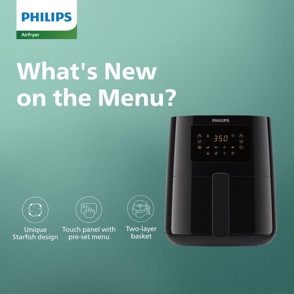 PHILIPS Digital Air Fryer HD9252/90 with Touch Panel, uses up to 90% less fat, 7 Pre-set Menu, 1400W, 4.1 Liter, with Rapid Air Technology (Black), Large (Pack of 2)