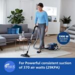 1900-WATT DURABLE MOTOR: Durable 1900W motor generates up to 370W of high suction power for thorough cleaning results