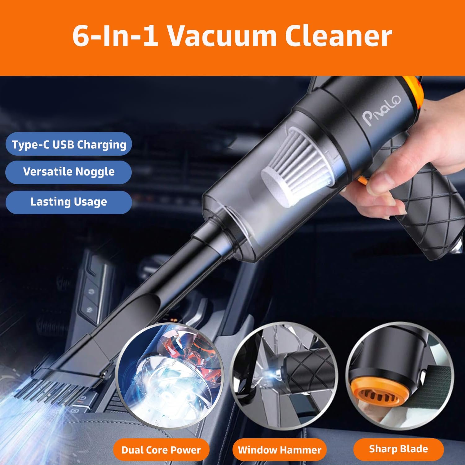 Compact Power for Complete Car Care: Pivalo 6-in-1 Vacuum Cleaner