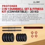Protoner PVC 3 in 1 convertible DM 4-40 Kg Dumbbells Set and Fitness Kit for Men and Women Whole Body Workout (20 kg (2 kg x 4, 3 kg x 4), 3 in 1 convertible)