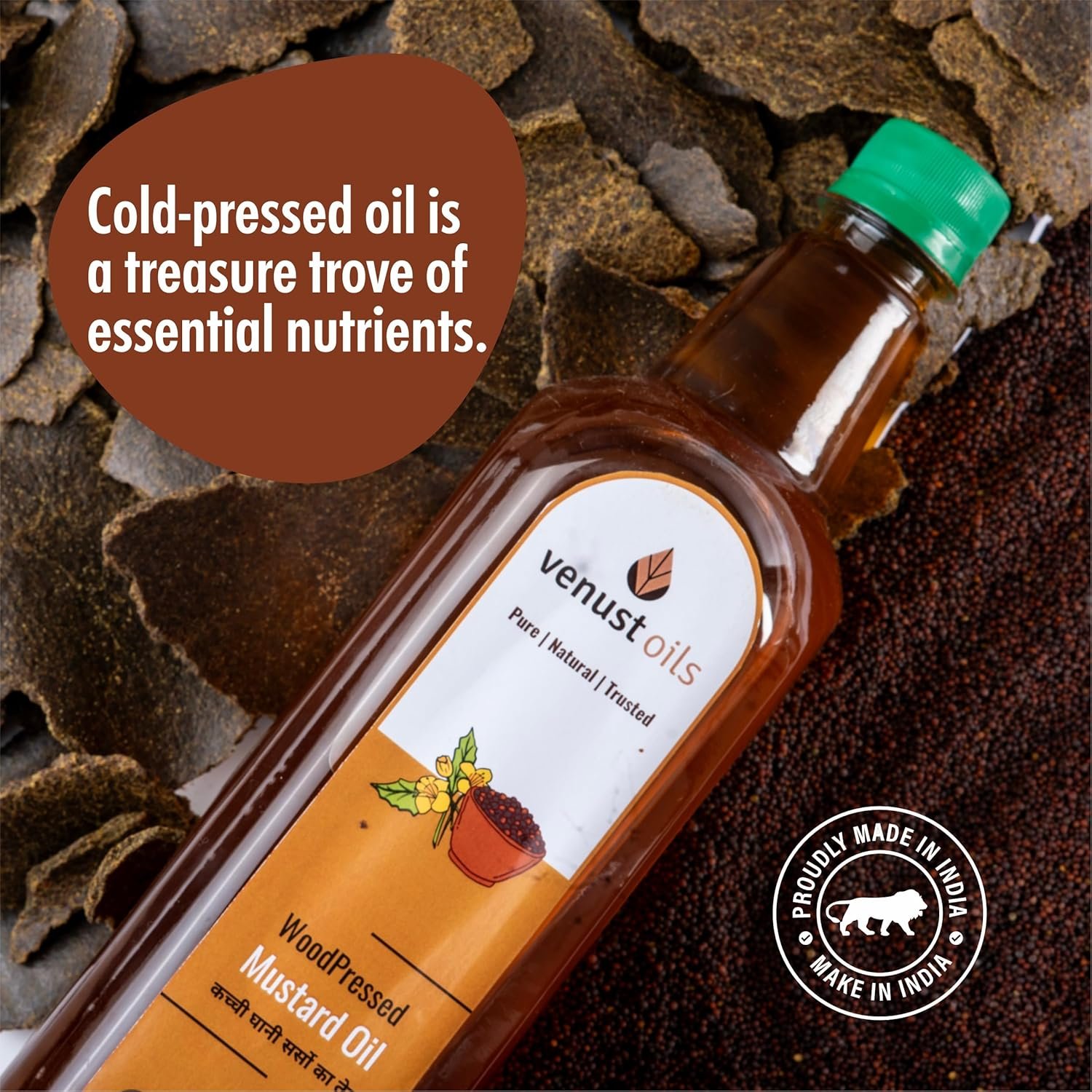 Pure & Natural Cold Pressed Mustard Oil by Venust | 100% Unrefined, Cholesterol-Free, Rich in Omega-3 & Antioxidants | Authentic Kachi Ghani Oil for Cooking