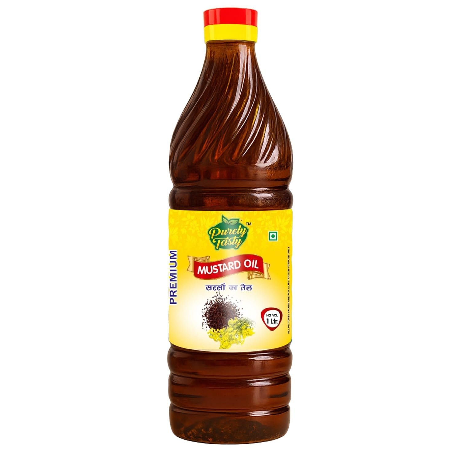 Purely Tasty Organic Kachi Ghani Mustard Oil | Single Cold-Pressed Unrefined Pure Mustard Oil for Cooking, Pickling & Raw Consumption | Rich Aroma & Flavour | 1L