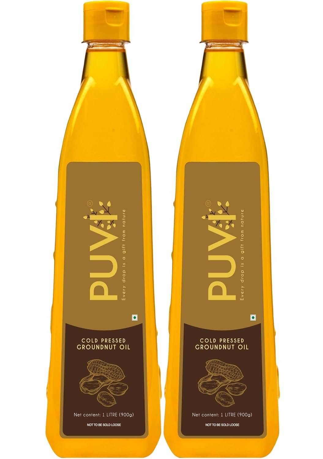 Puvi 2L Cold Pressed Groundnut/Peanut Oil (Virgin, Chekku/Ghani) – (1 Litre*Pack of 2)