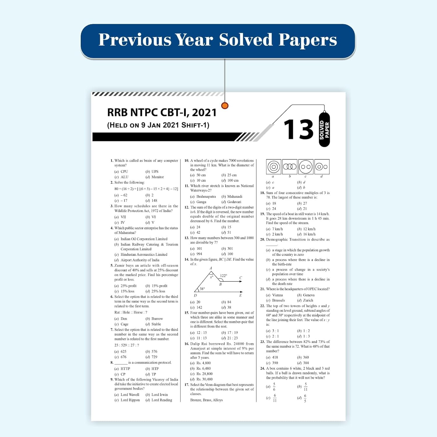 Practice with 15 Previous Year Solved Papers: Gain invaluable insights from 15 solved papers of the RRB NTPC CBT-1, including detailed explanations of the 2016 and 2021 exams.